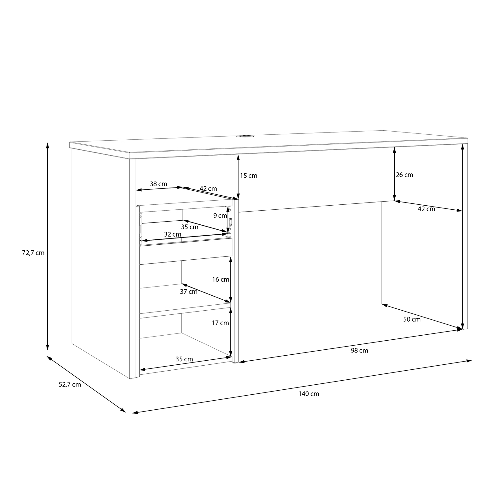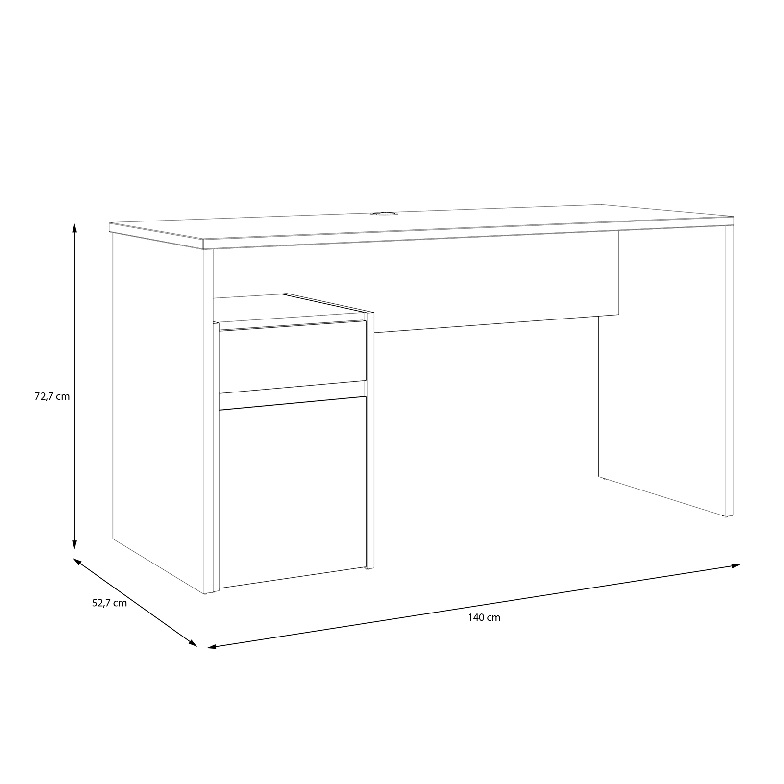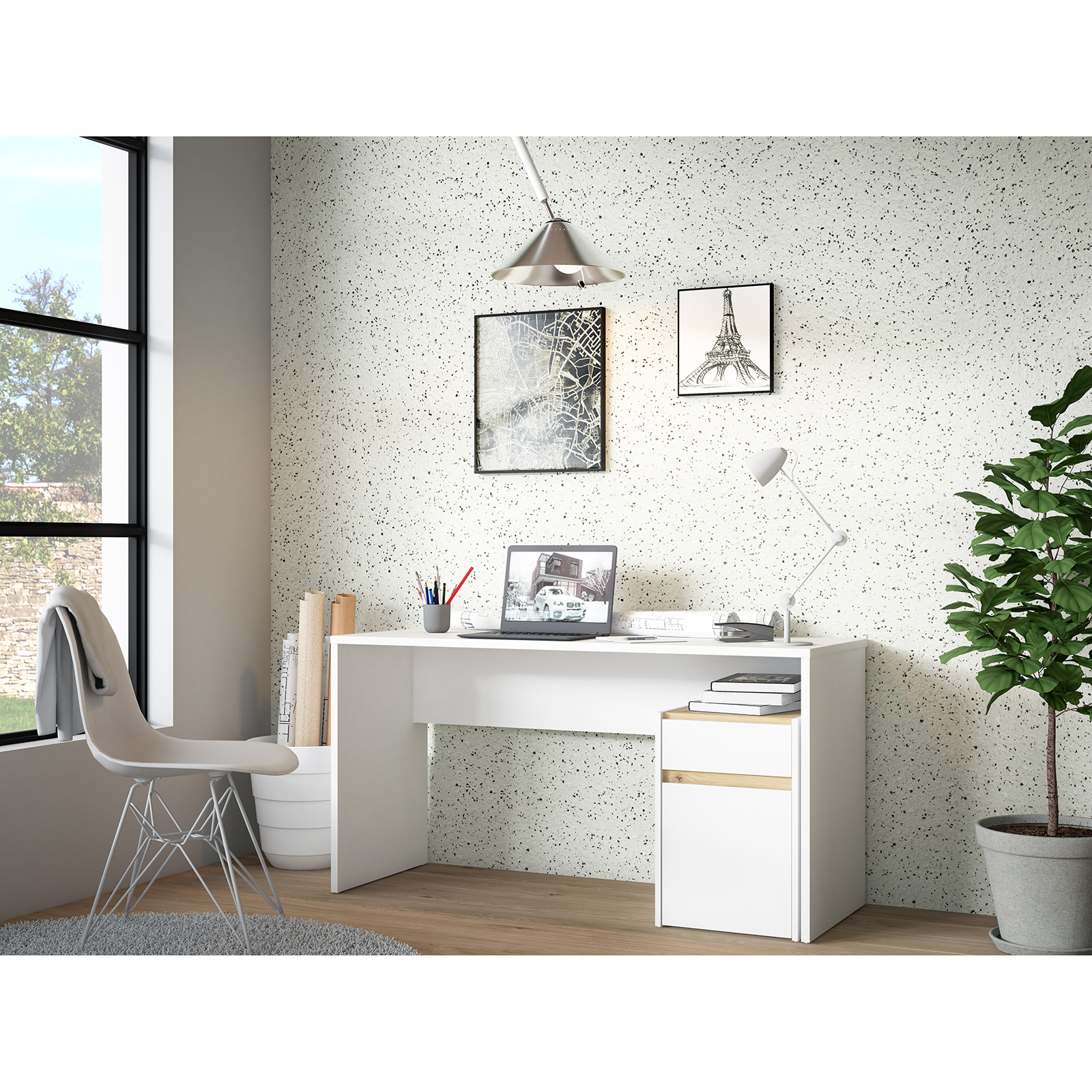 Birou SURIA, cu usa si un sertar, alb + stejar artisan, 140x53x73 cm