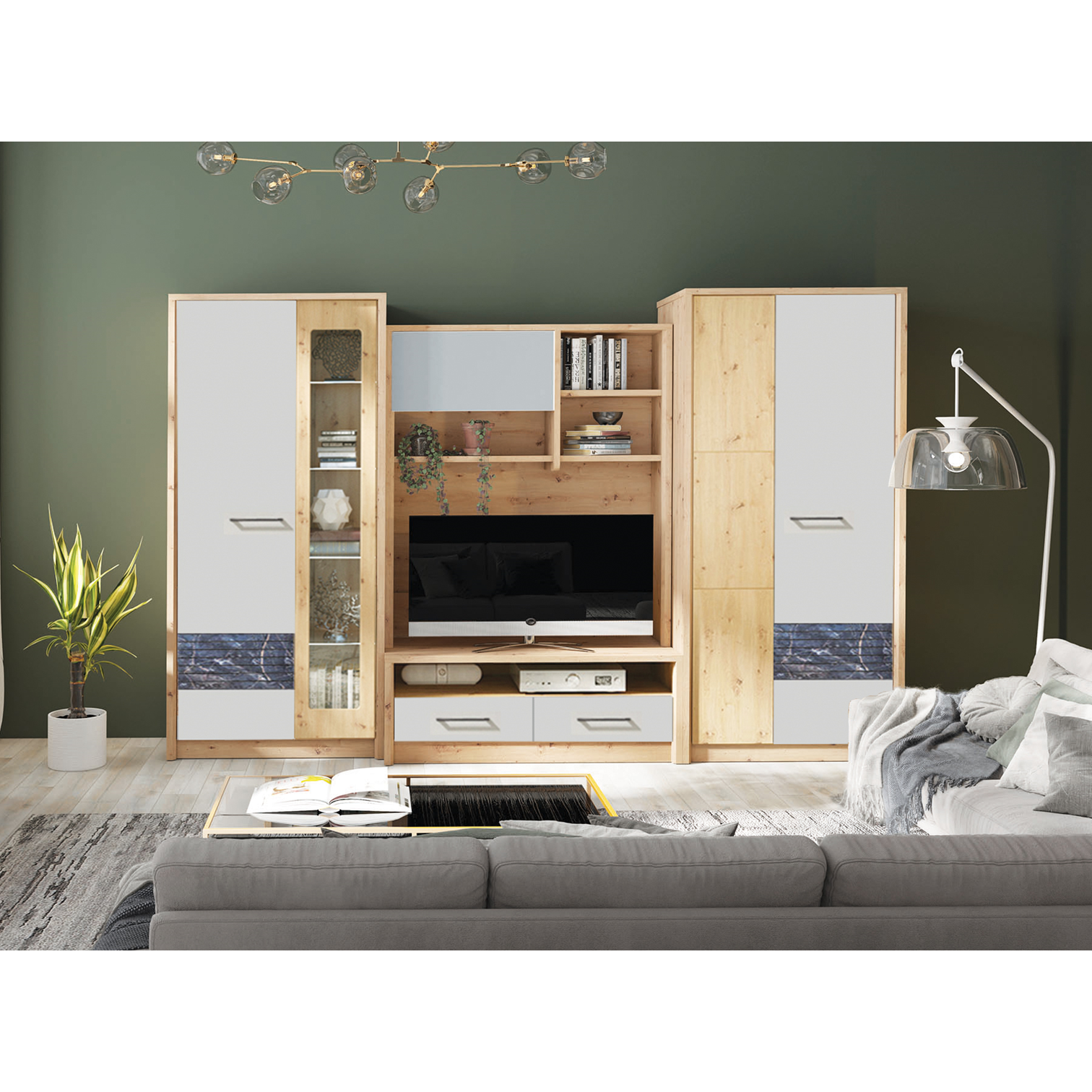 Living: Alege o canapea si un fotoliu din piele sau material textil natural, precum bumbac sau lana, intr-o culoare neutra, precum alb, gri sau bej