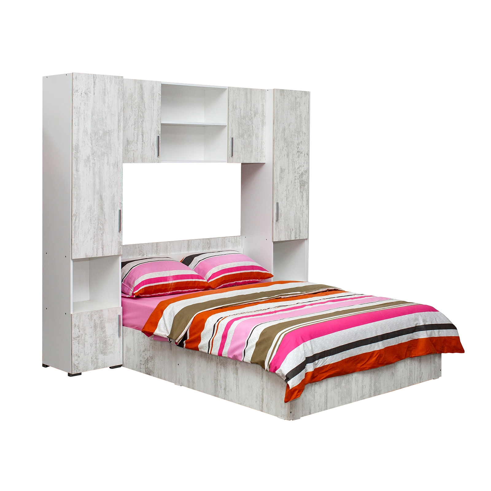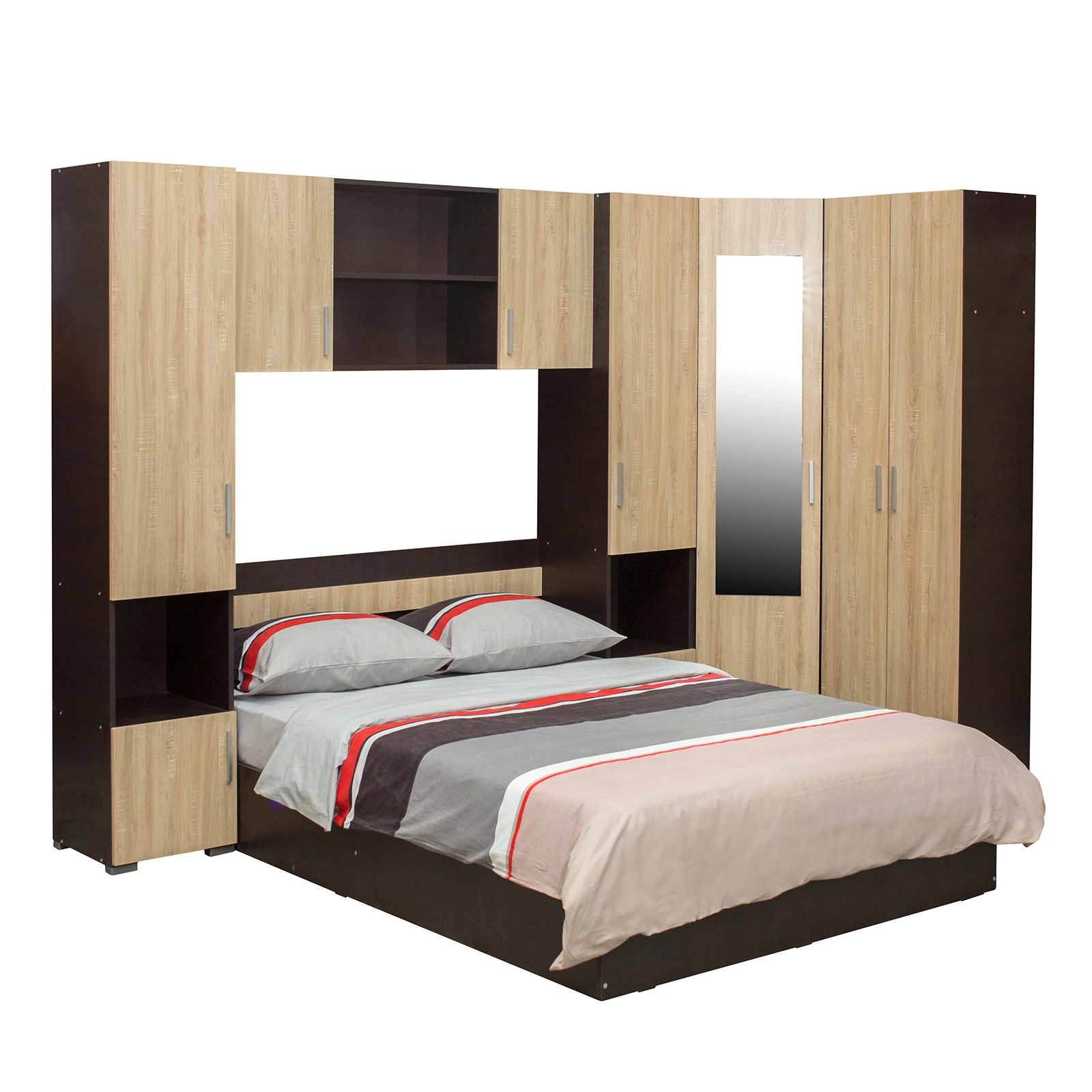 Aceasta mobila concentreaza patul si dulapurile pe colt, astfel incat restul camerei sa ramana disponibil pentru alte activitati, pentru birou si chiar pentru zone de relaxare si socializare.