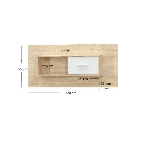 Raft suspendat TIPS, 1 usa, stejar sonoma + alb, 120x23x55 cm