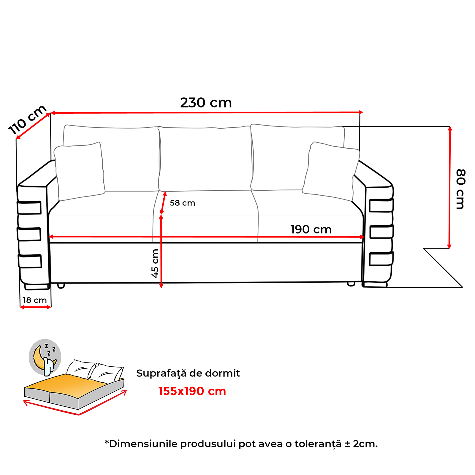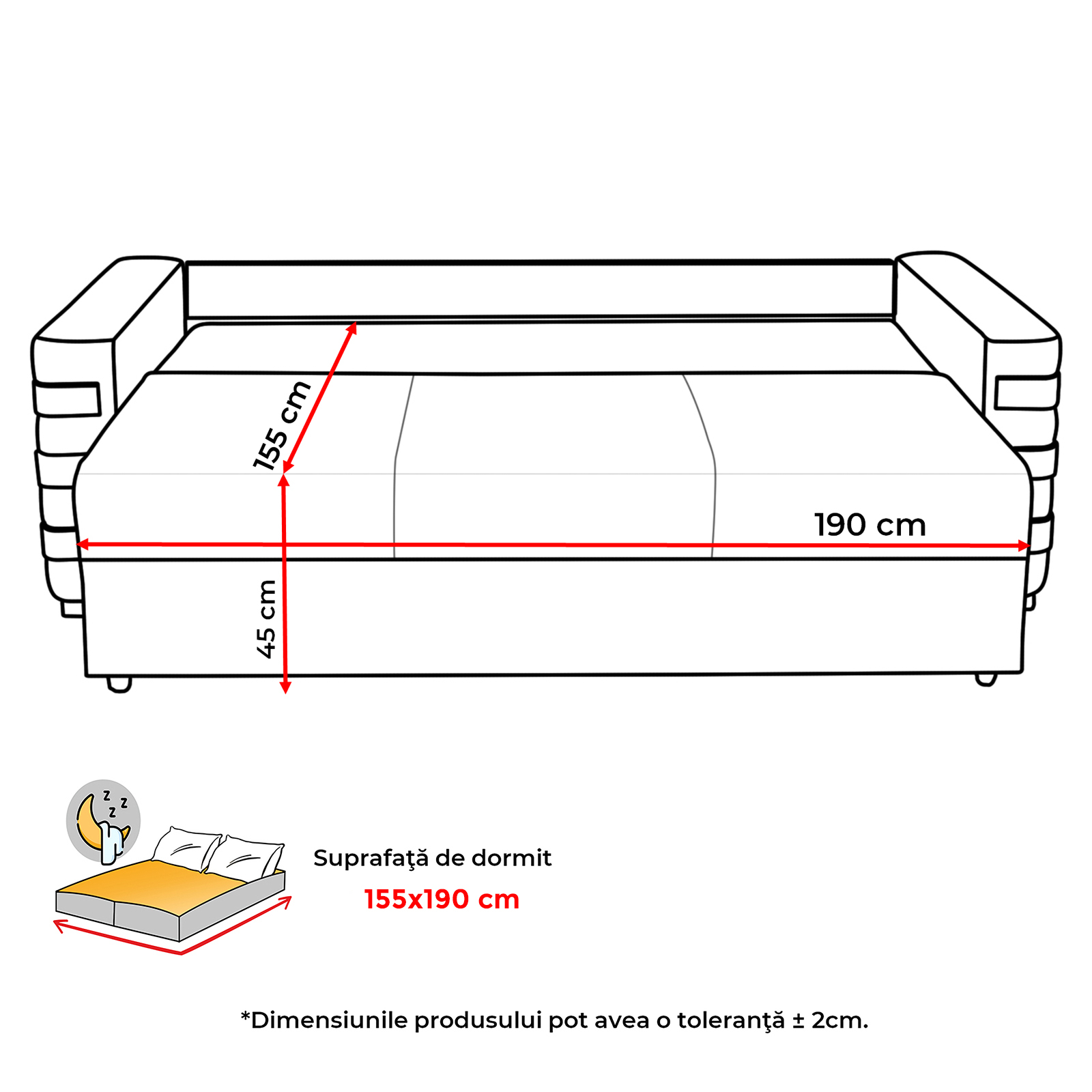 Suprafata dormit: 155x190 cm