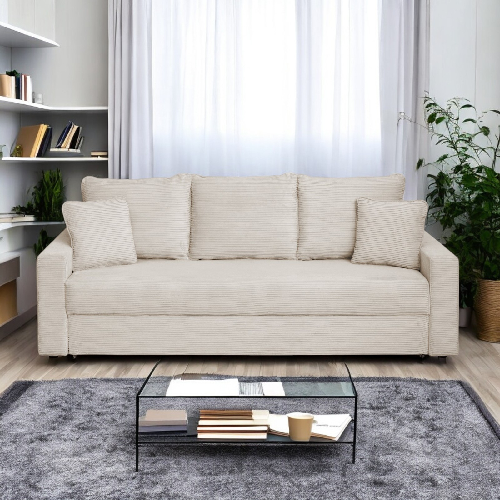 Canapea NICO II LUX extensibila, 3 locuri, cu arcuri si lada depozitare, bej, 220x85x75 cm