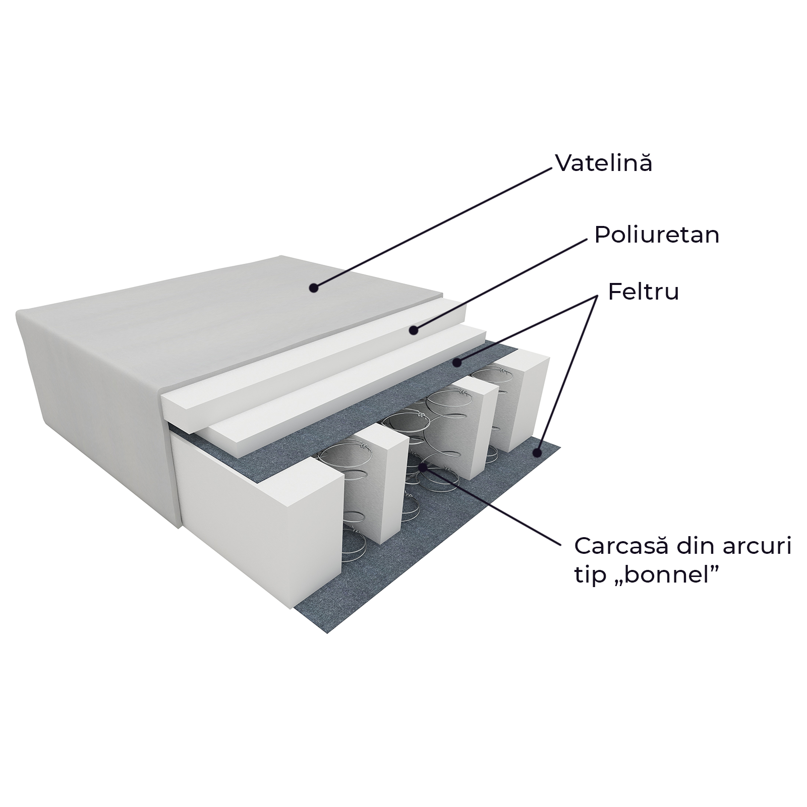 • Sezut confortabil datorita plasei de arcuri tip Bonnel