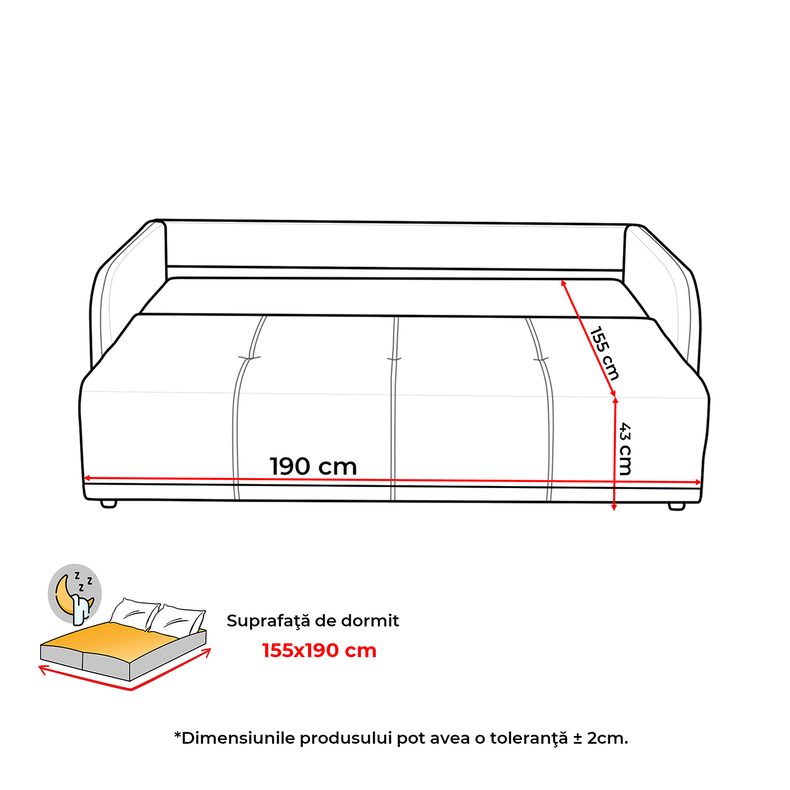 Canapeaua BERNA S va amenajeaza confortabil si estetic livingul. Designul este realizat intr-un veritabil stil clasic, in timp ce detaliile deosebite si tapiteria din stofa ii confera un aspect relaxat si versatil. Cromatica este naturala si neutra, asortandu-se cu usurinta in diverse amenajari. Structura si materialele sunt special alese pentru a-i asigura Canapelei BERNA S durabilitatea si confortul. Usor de manevrat, canapeaua are un sistem de extensie ingenios care permite sezutului canapelei sa se deschida pe directia din fata cu o miscare lina si cursiva, fara efort, iar strangerea canapelei se face cu aceeasi usurinta. Suprafata de dormit a canapelei este confectionata din plasa de arcuri tip Bonell, Pasla, vatelina si spuma poliuretanica cu densitate ridicat. Canapeaua este realizata pe structura de lemn, ceea ce constituie o garantie pentru o durata lunga de utilizare si o rezistenta sporita.