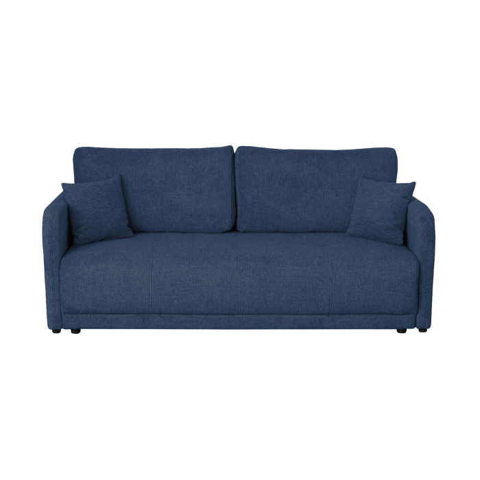 Canapea BERNA S extensibila, 3 locuri, cu arcuri si lada depozitare, albastru, 210x110x93 cm