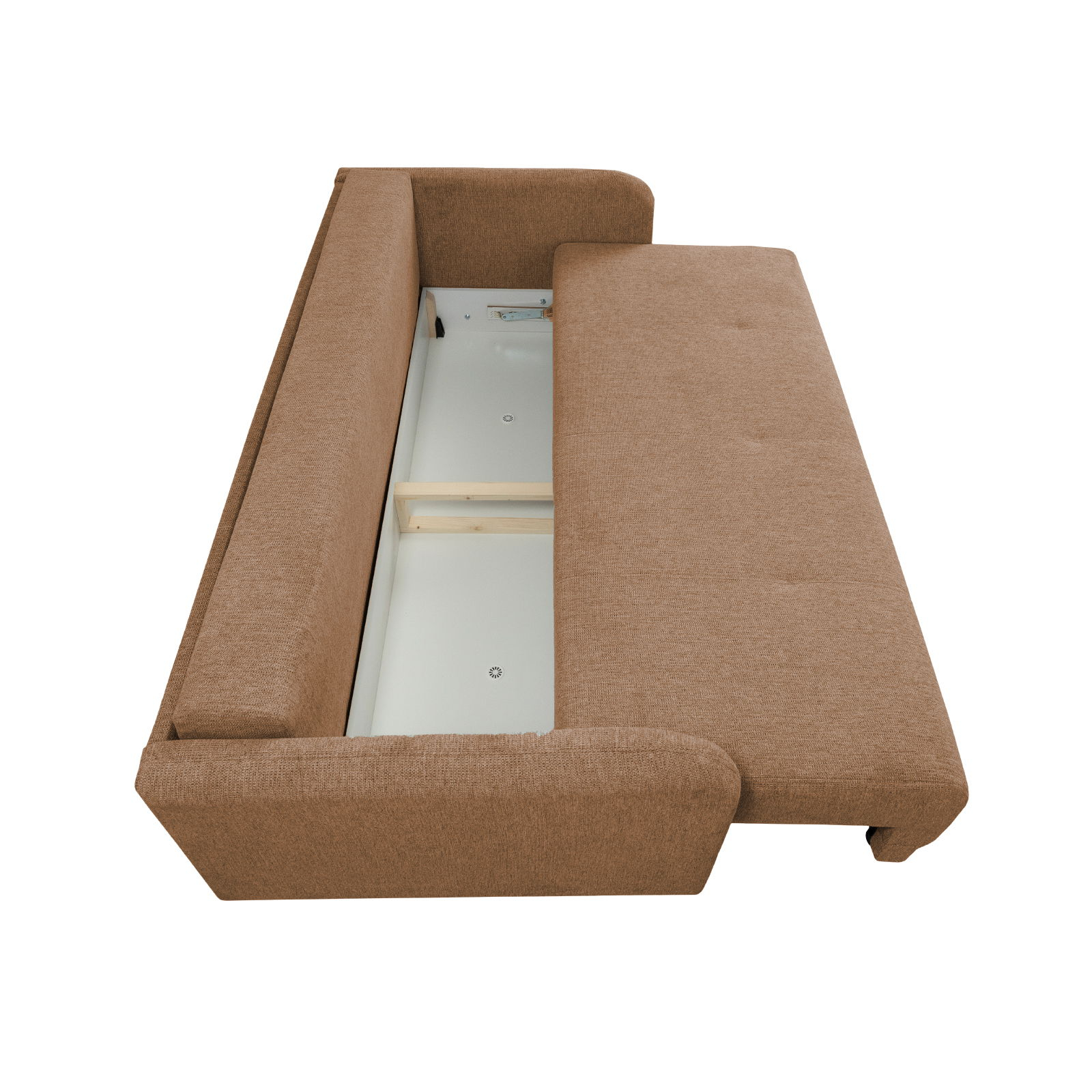 Canapea BERNA S extensibila, 3 locuri, cu arcuri si lada depozitare, caramiziu, 210x110x93 cm