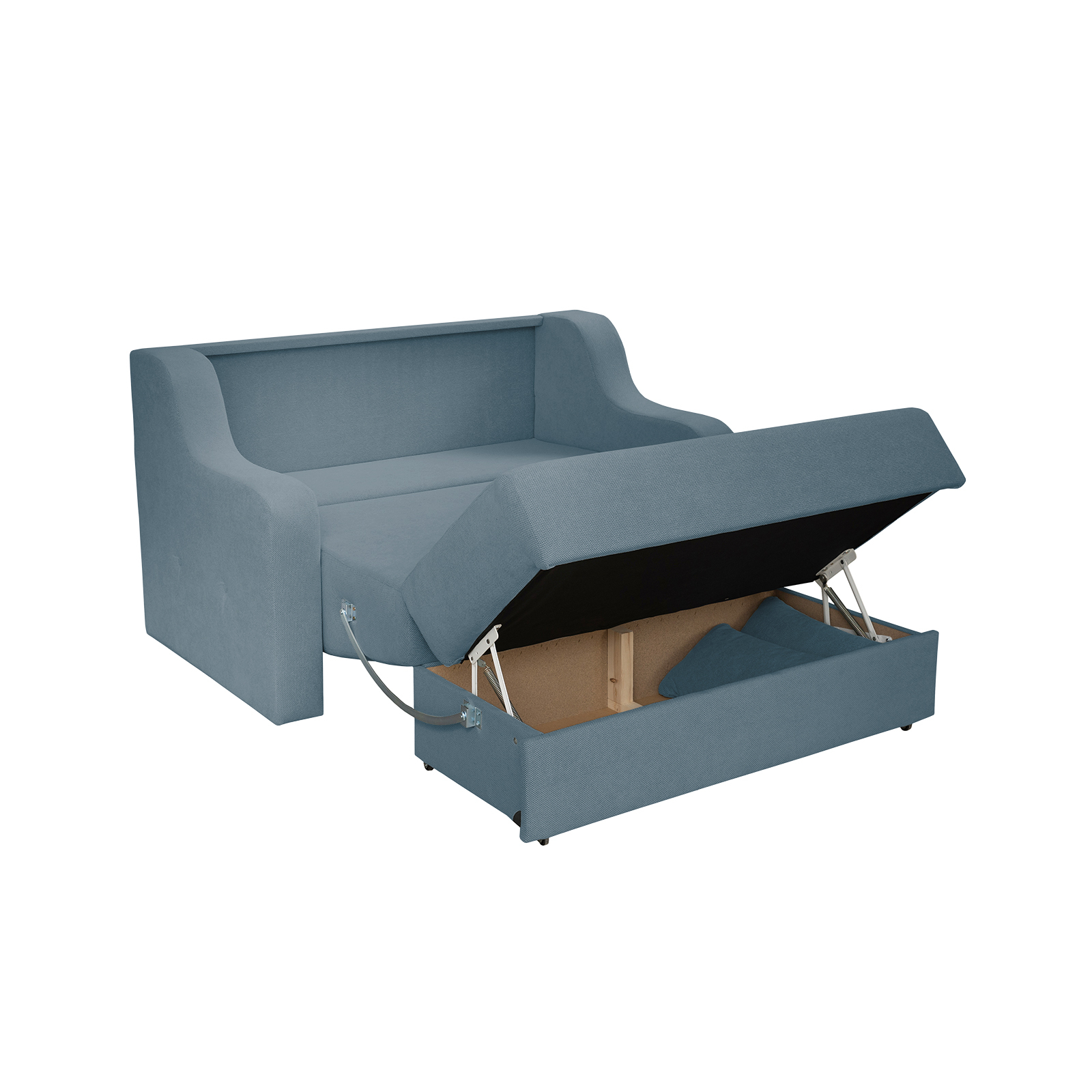 Canapea GINA II extensibila, 2 locuri, cu arcuri si lada depozitare, albastru deschis, 155x100x95 cm