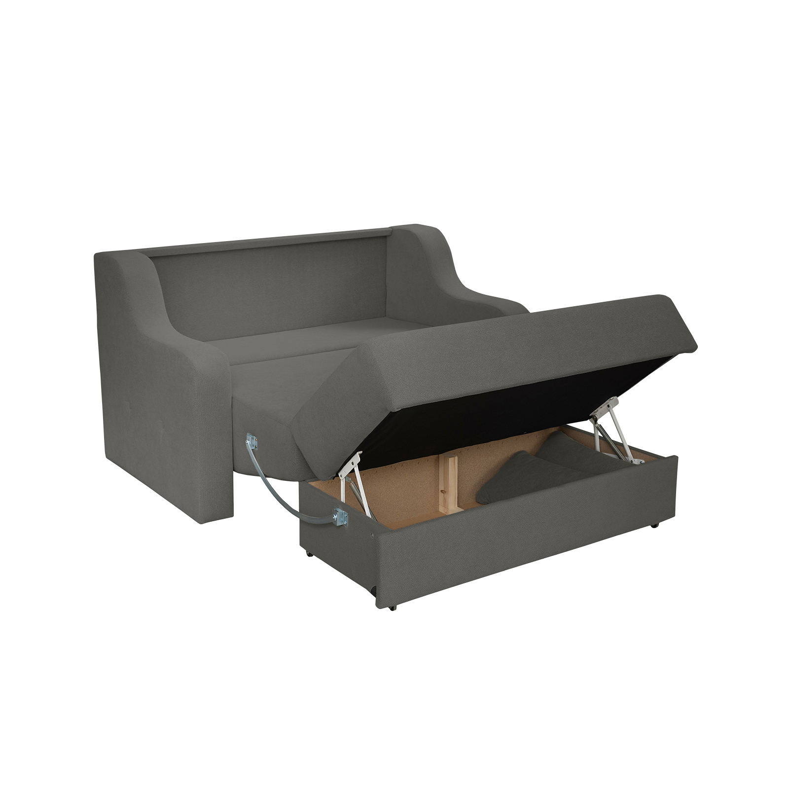 Canapea GINA II extensibila, 2 locuri, cu arcuri si lada depozitare, gri inchis, 155x100x95 cm