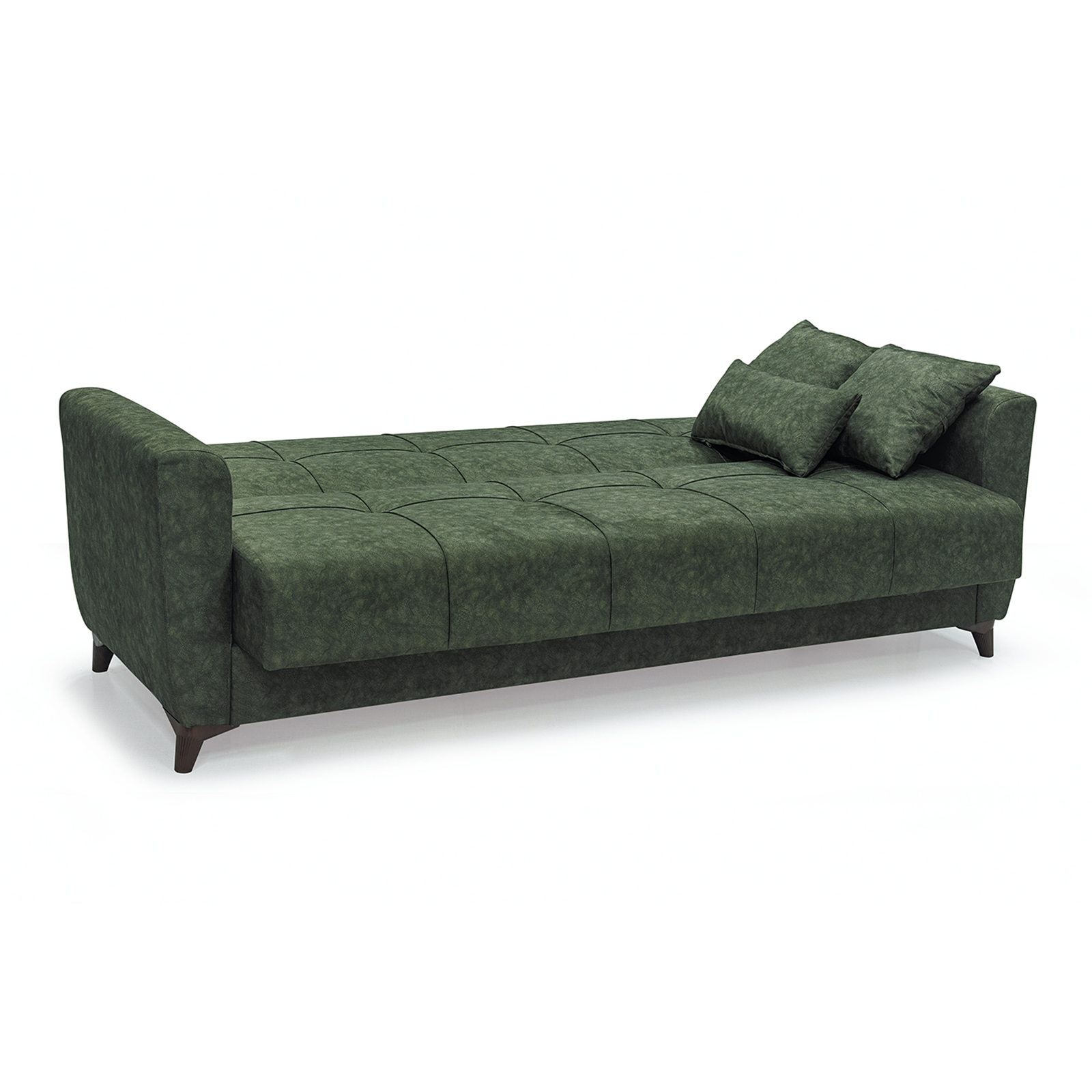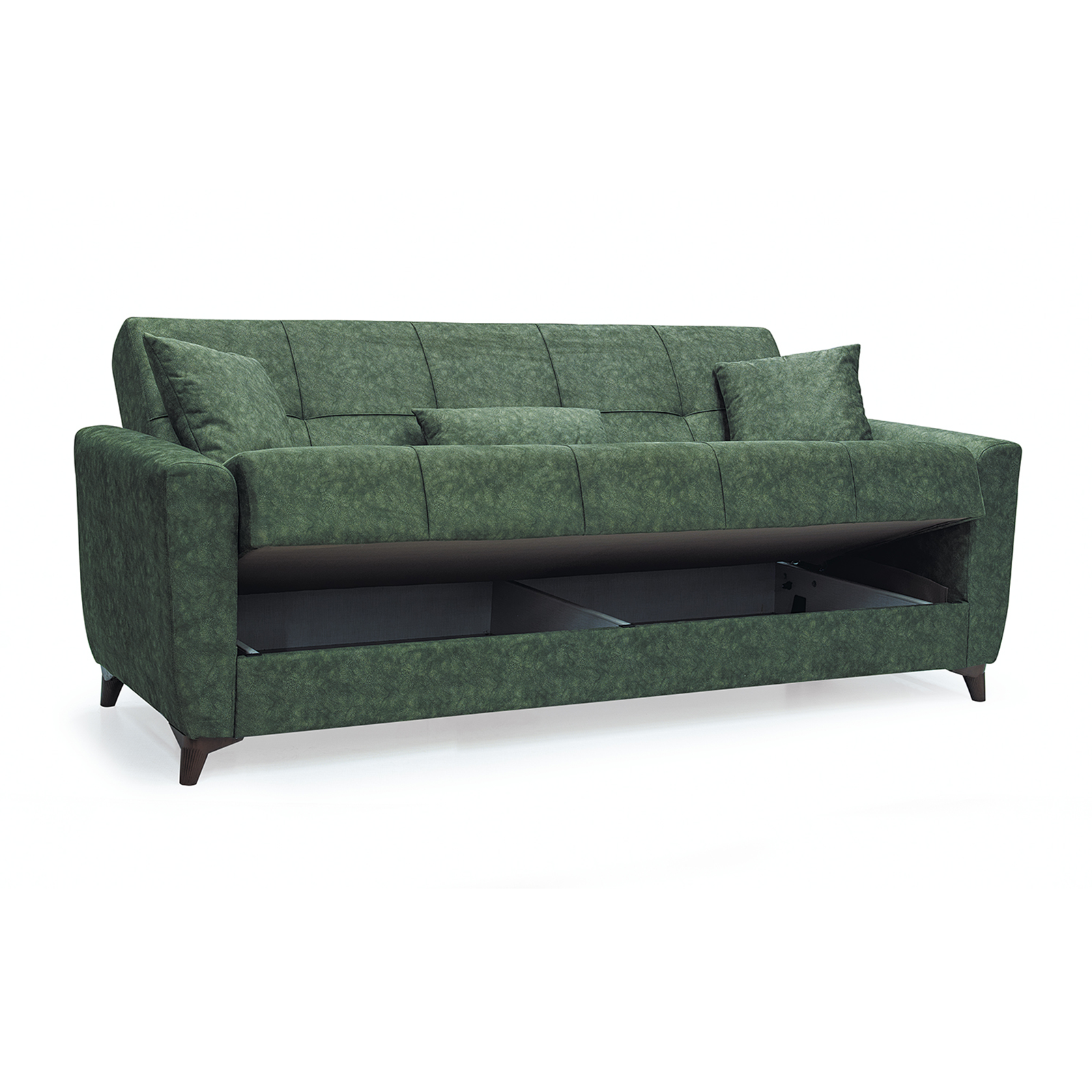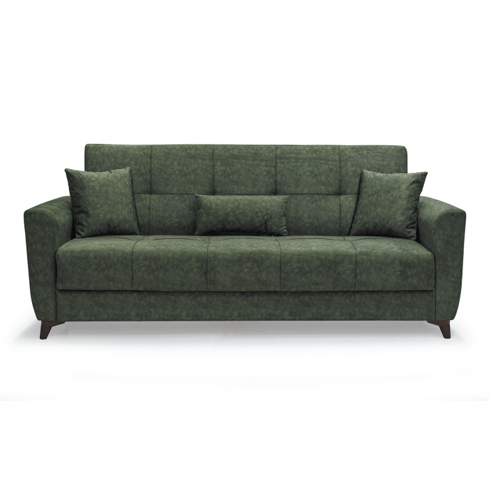 Canapea LEON extensibila, 3 locuri, cu arcuri si lada depozitare, verde, 224x90x95 cm