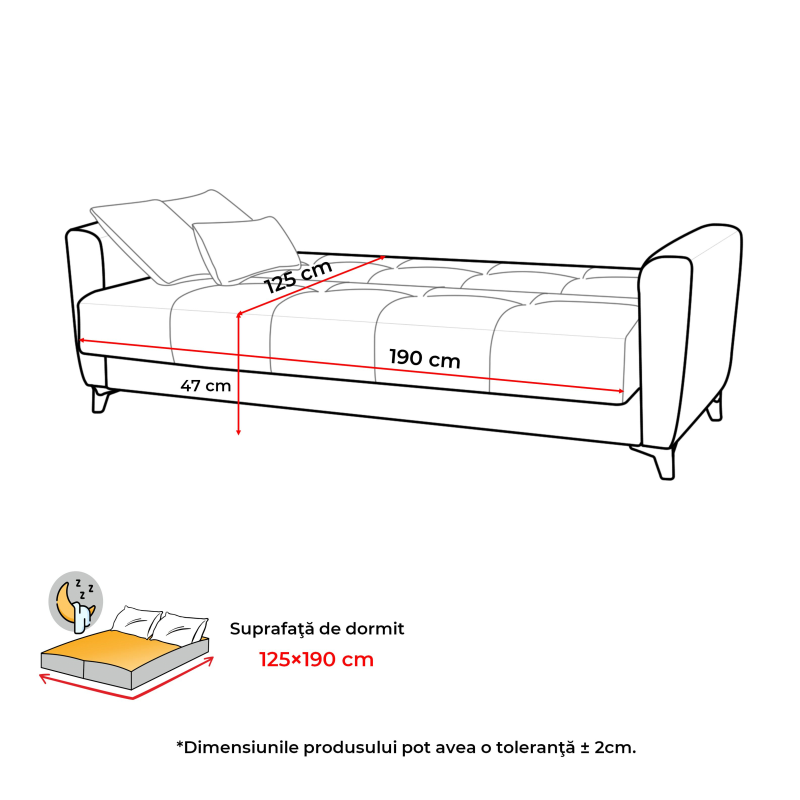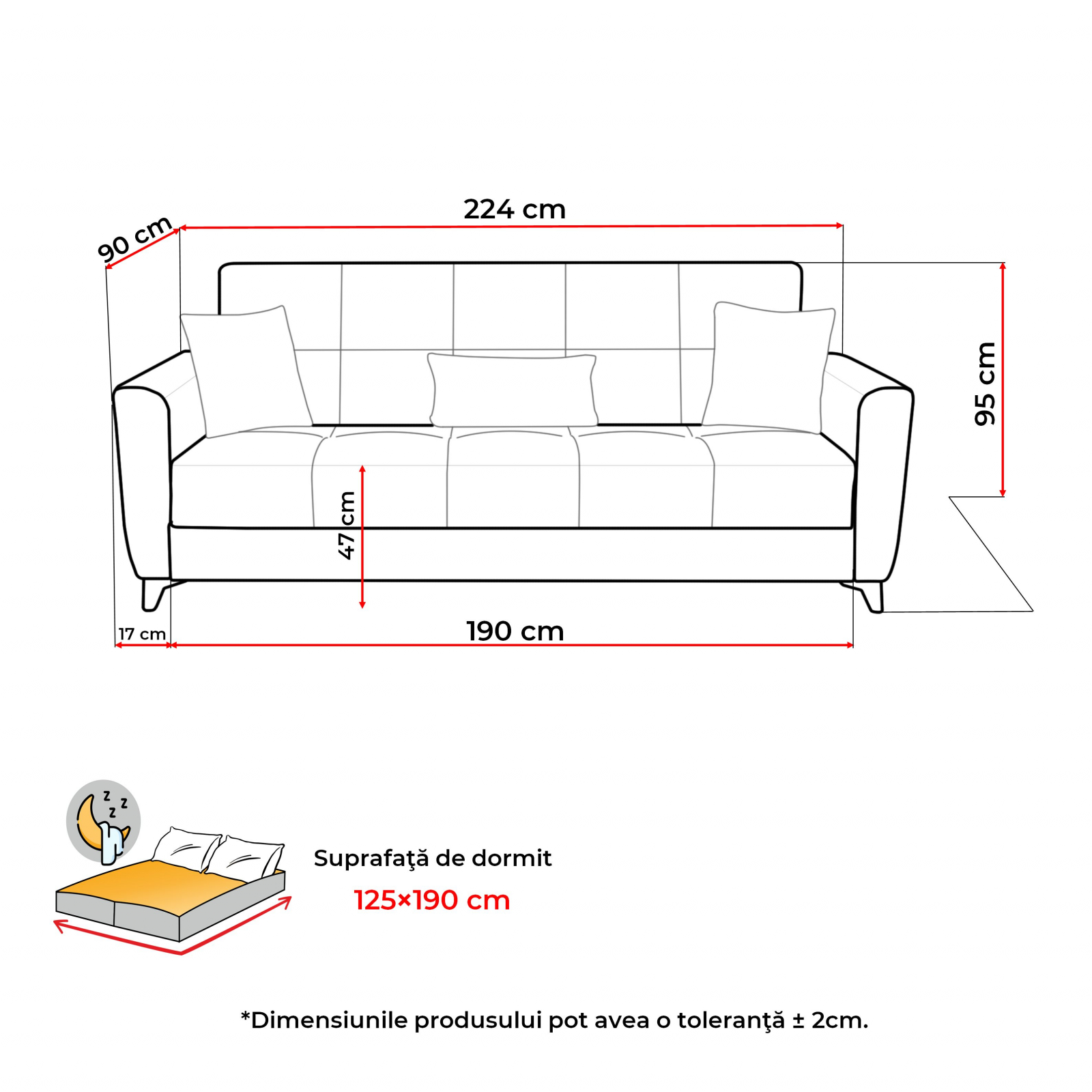 Dimensiuni canapea (gabarit):