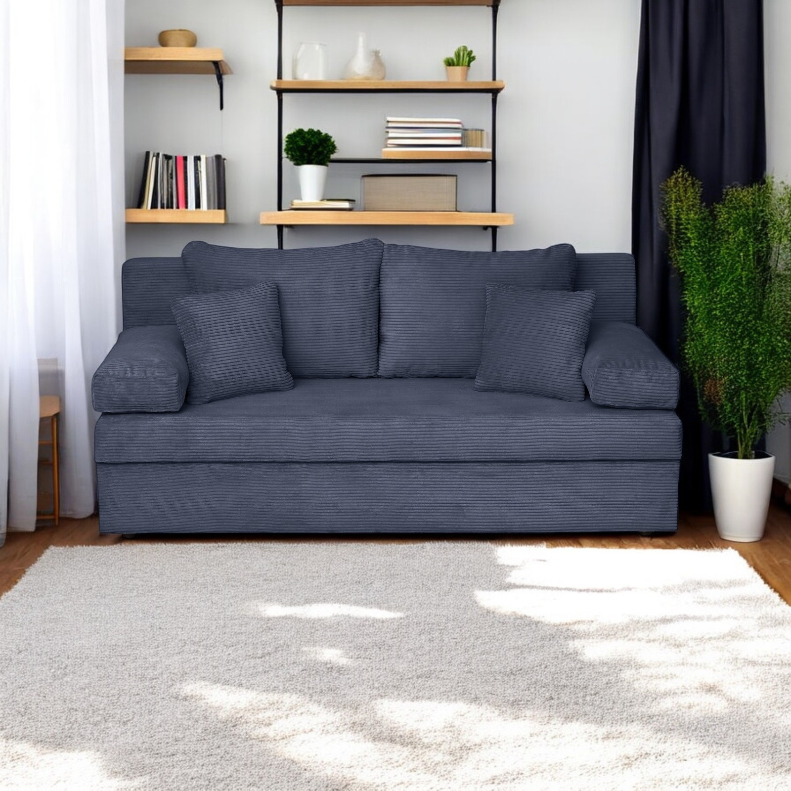 Canapea ANA LUX extensibila, 3 locuri, cu lada depozitare, albastru, 185x82x80 cm