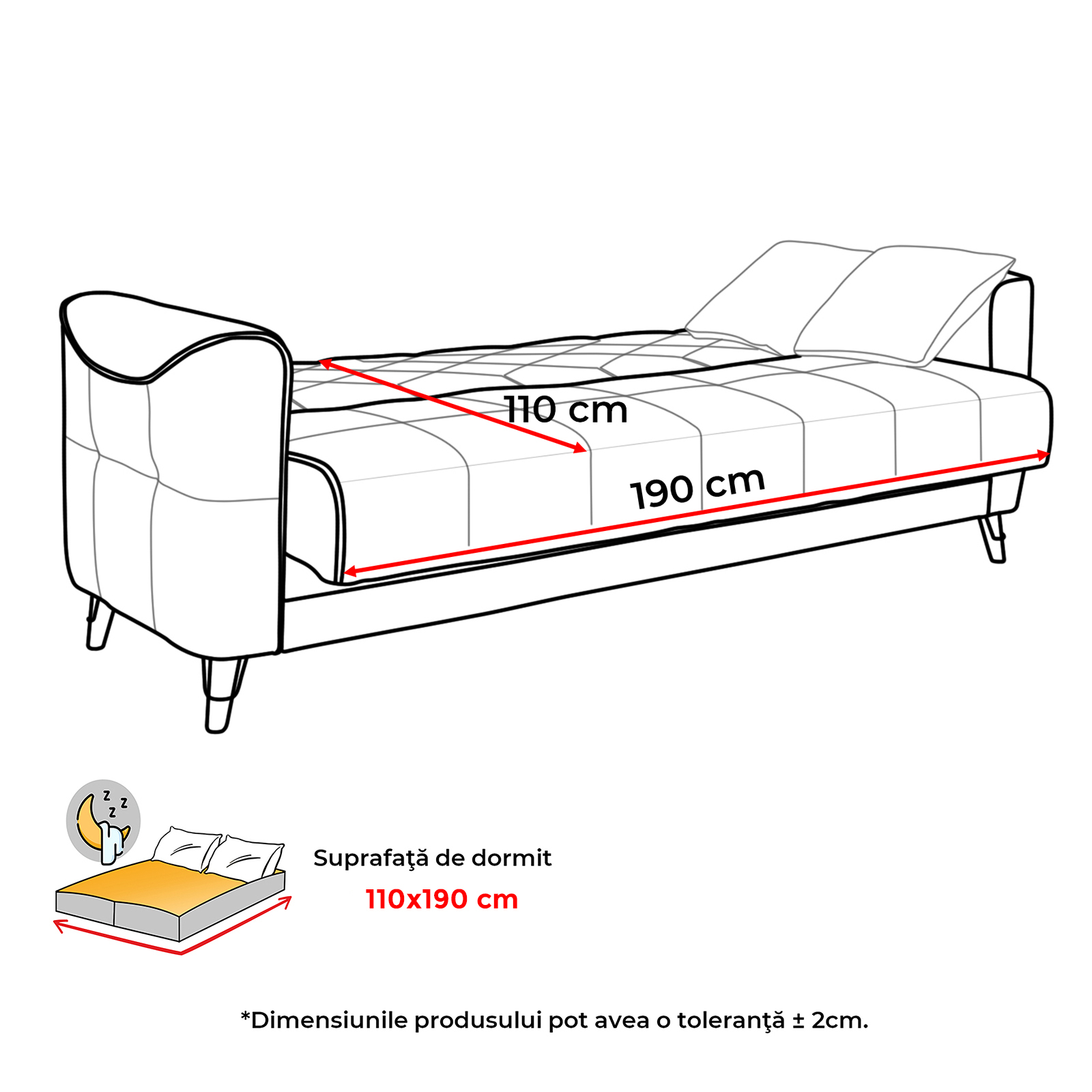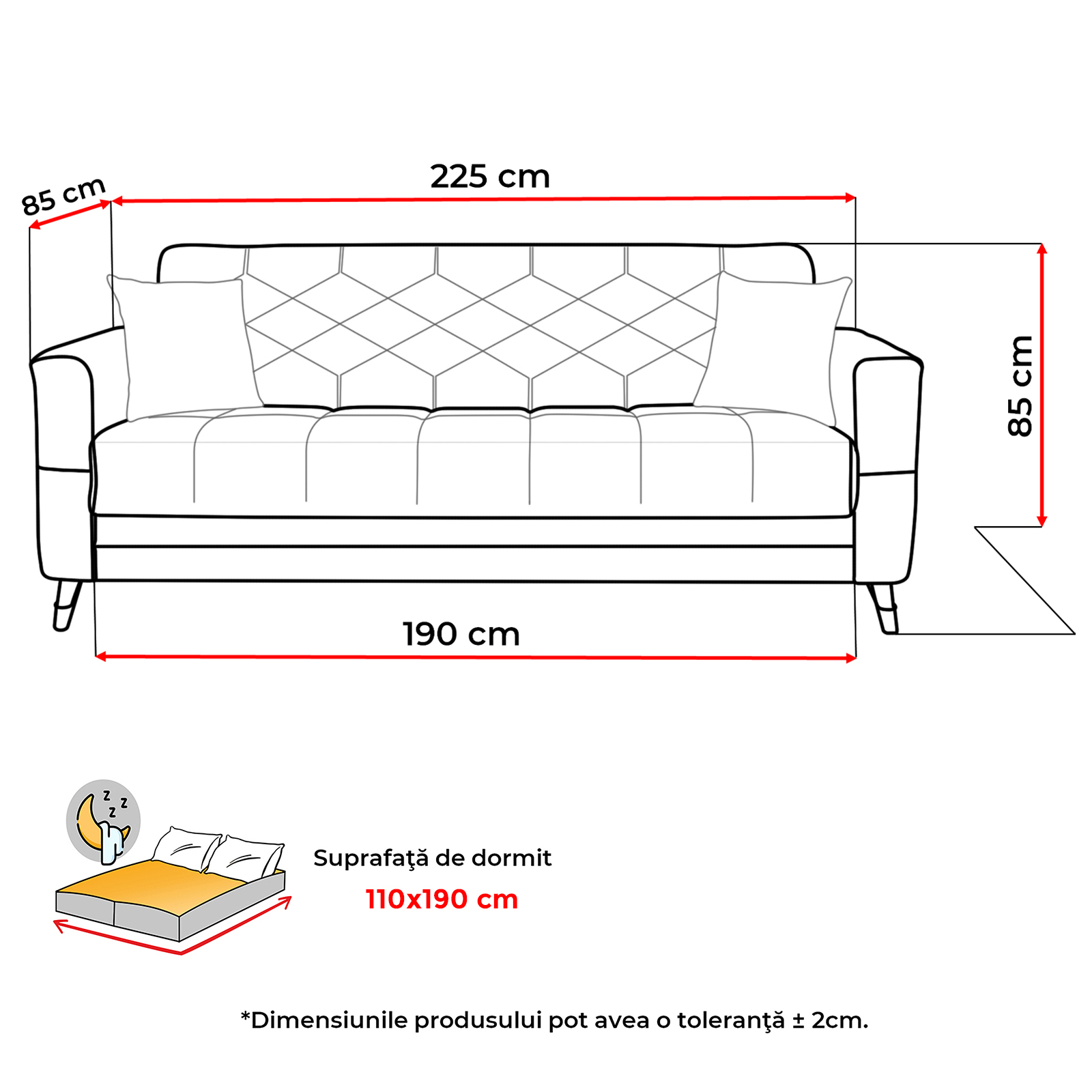 Materiale: PAL, Arcuri tip bonnel, Stofa, Spuma poliuretanica, Cadru lemn masiv