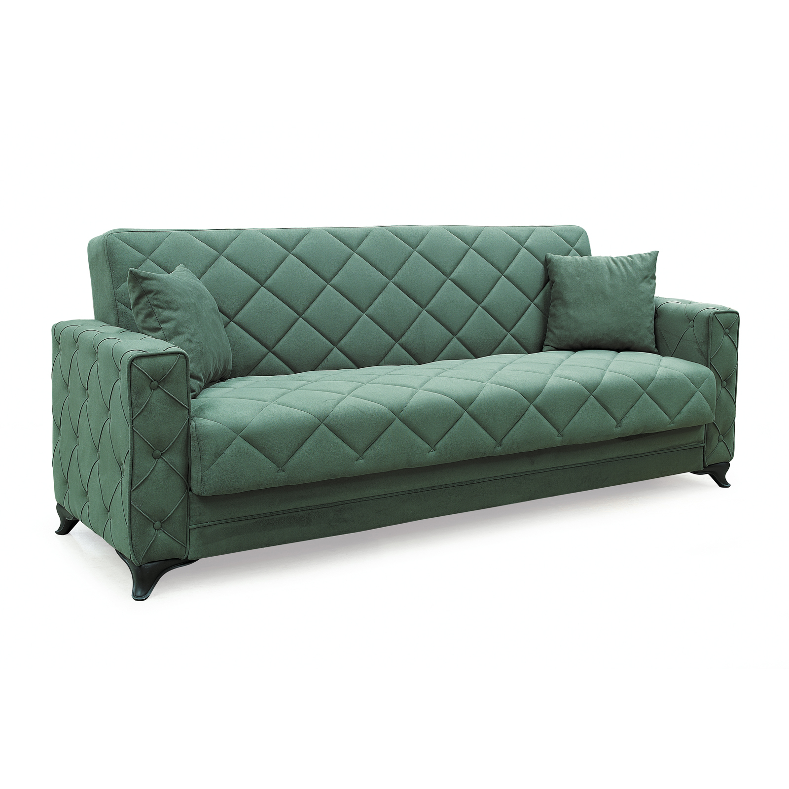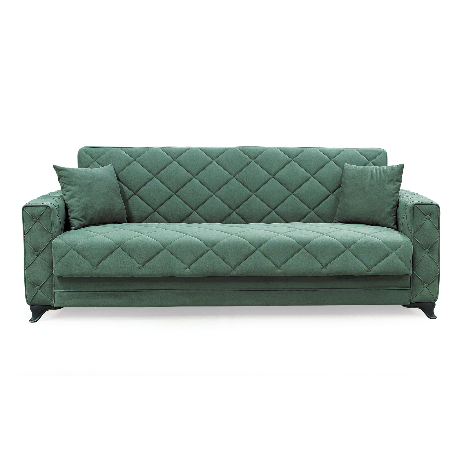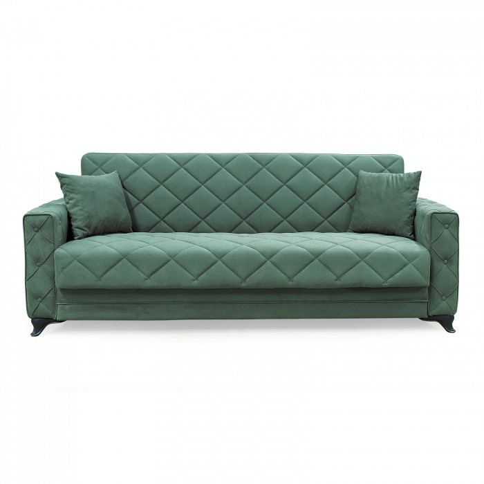 Canapea extensibila HEGEL, 3 locuri, cu arcuri si lada pentru depozitare, verde, 228x85x85 cm