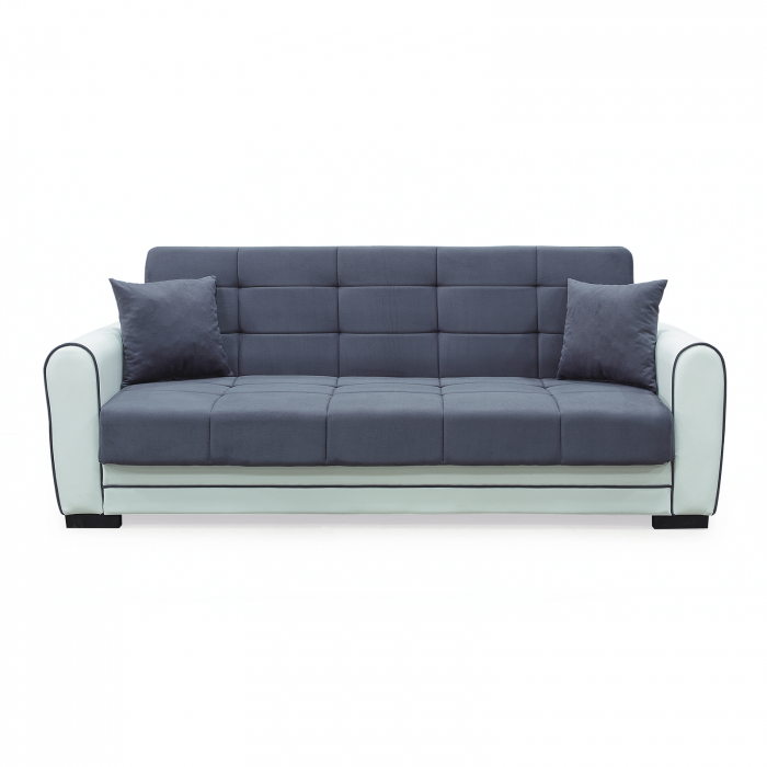 Canapea extensibila VIOLA, 3 locuri, cu arcuri si lada pentru depozitare, alb + gri, 228x85x85 cm