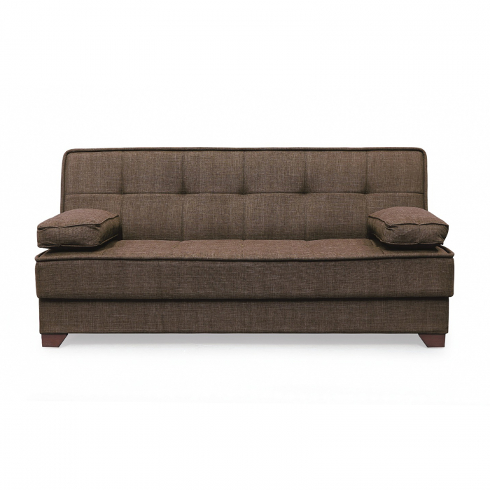 Canapea LEON II extensibila, 3 locuri, cu arcuri si lada depozitare, maro, 190x82x88 cm