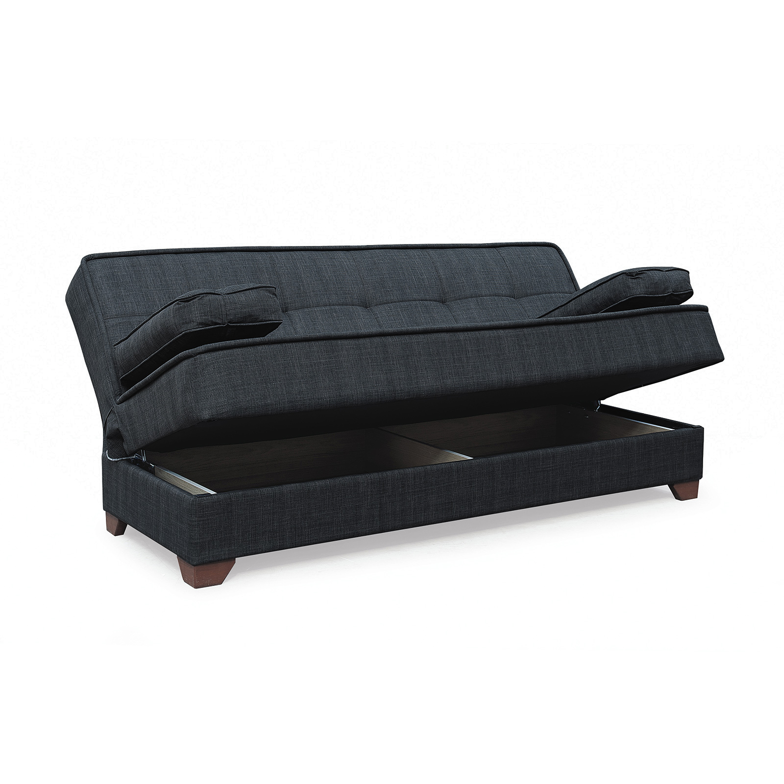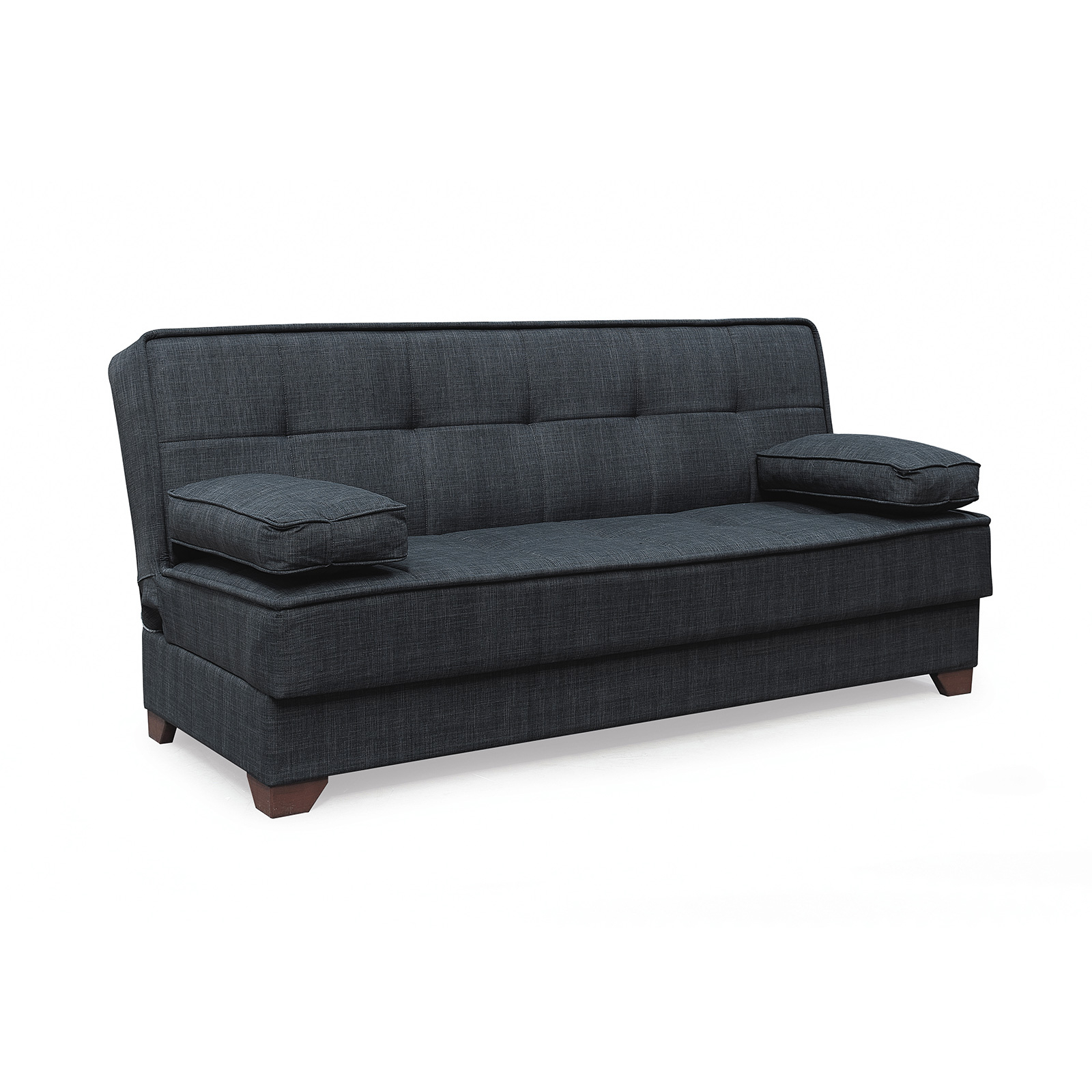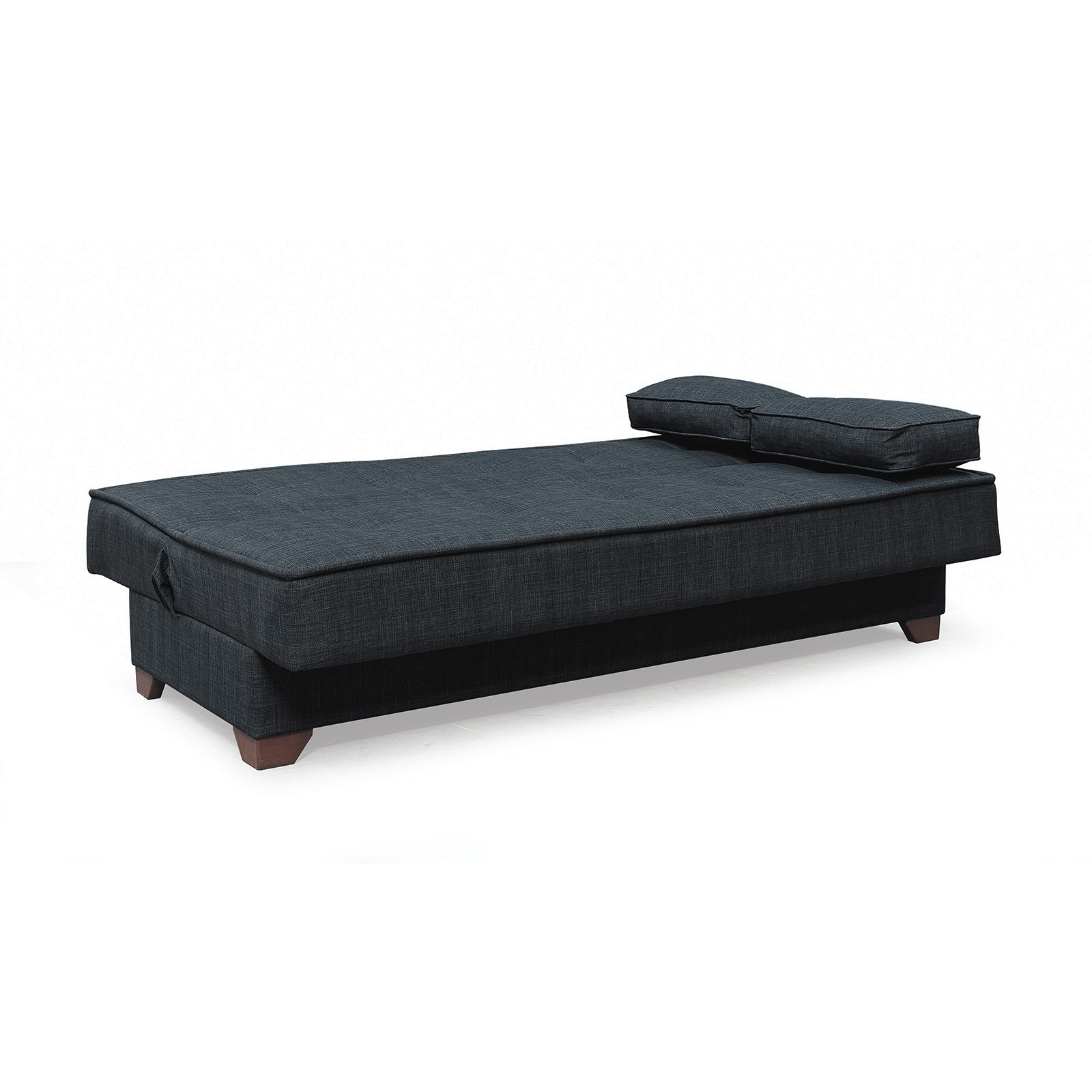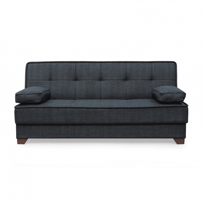 Canapea LEON II extensibila, 3 locuri, cu arcuri si lada depozitare, gri inchis, 190x82x88 cm
