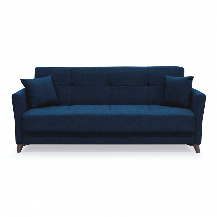 Canapea LOREN extensibila, 3 locuri, cu arcuri si lada depozitare, albastru, 203x85x85 cm