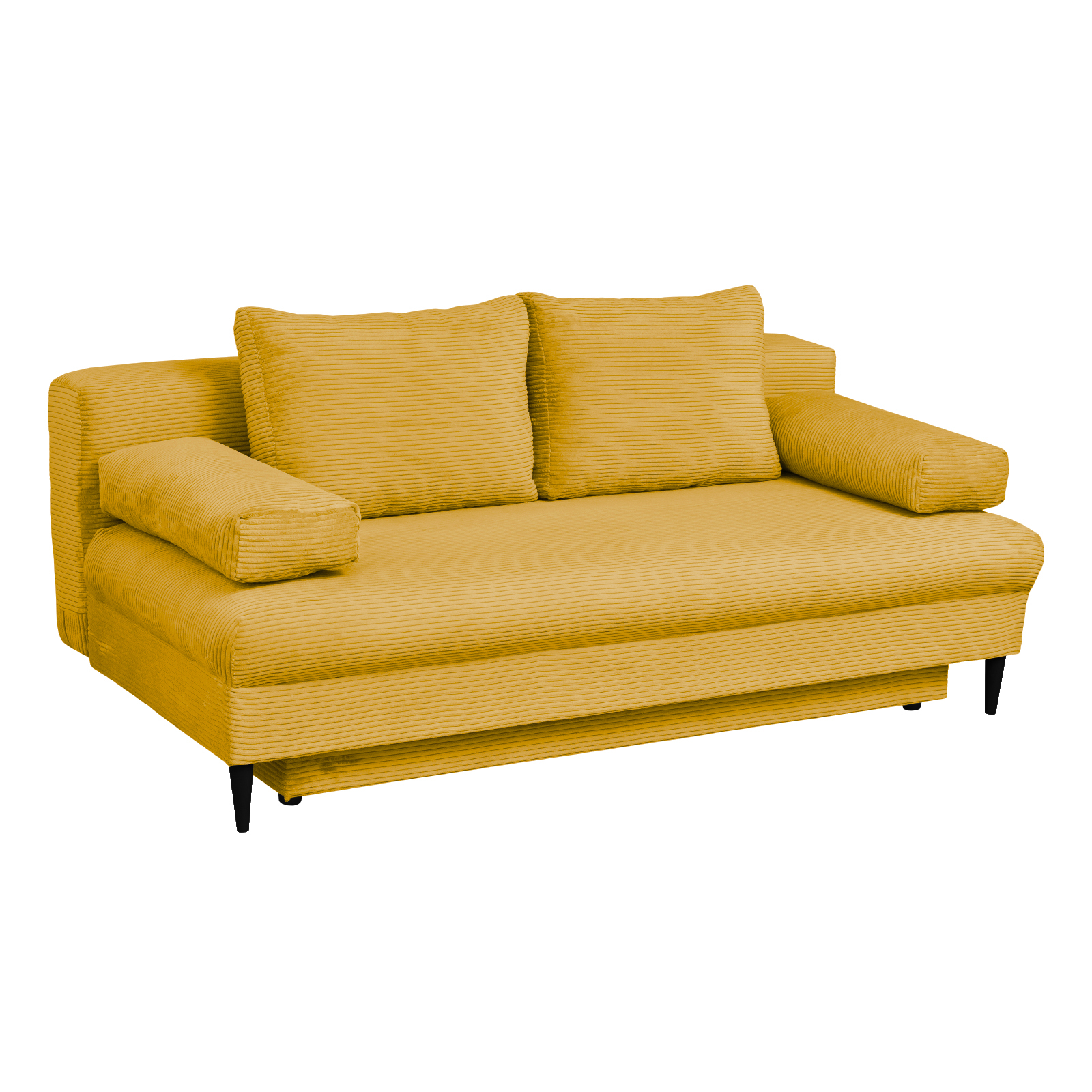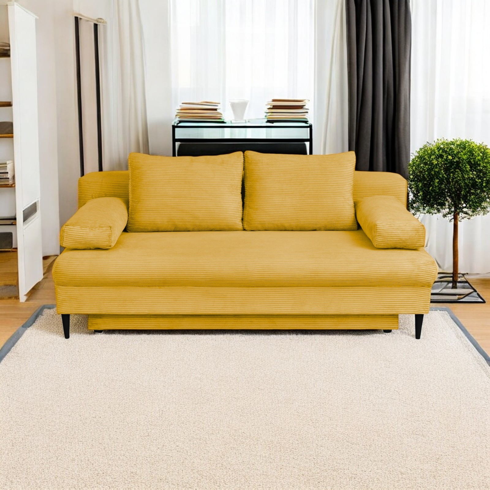 Canapea MILANO ONE extensibila, 3 locuri, cu arcuri si lada depozitare, galben, 200x95x95 cm