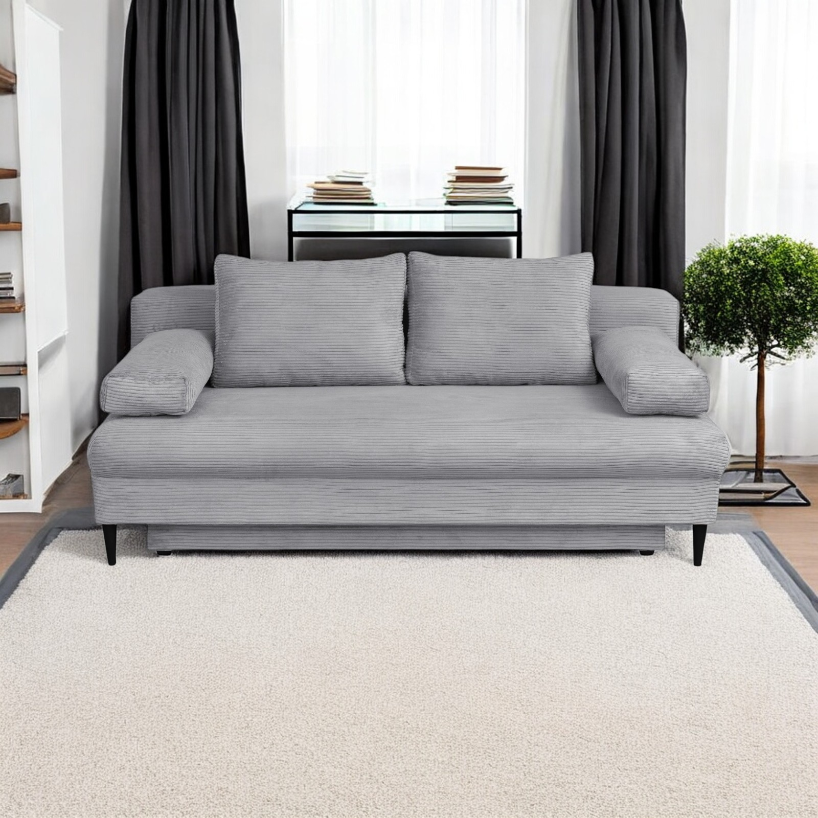 Canapea MILANO ONE extensibila, 3 locuri, cu arcuri si lada depozitare, gri, 200x95x95 cm