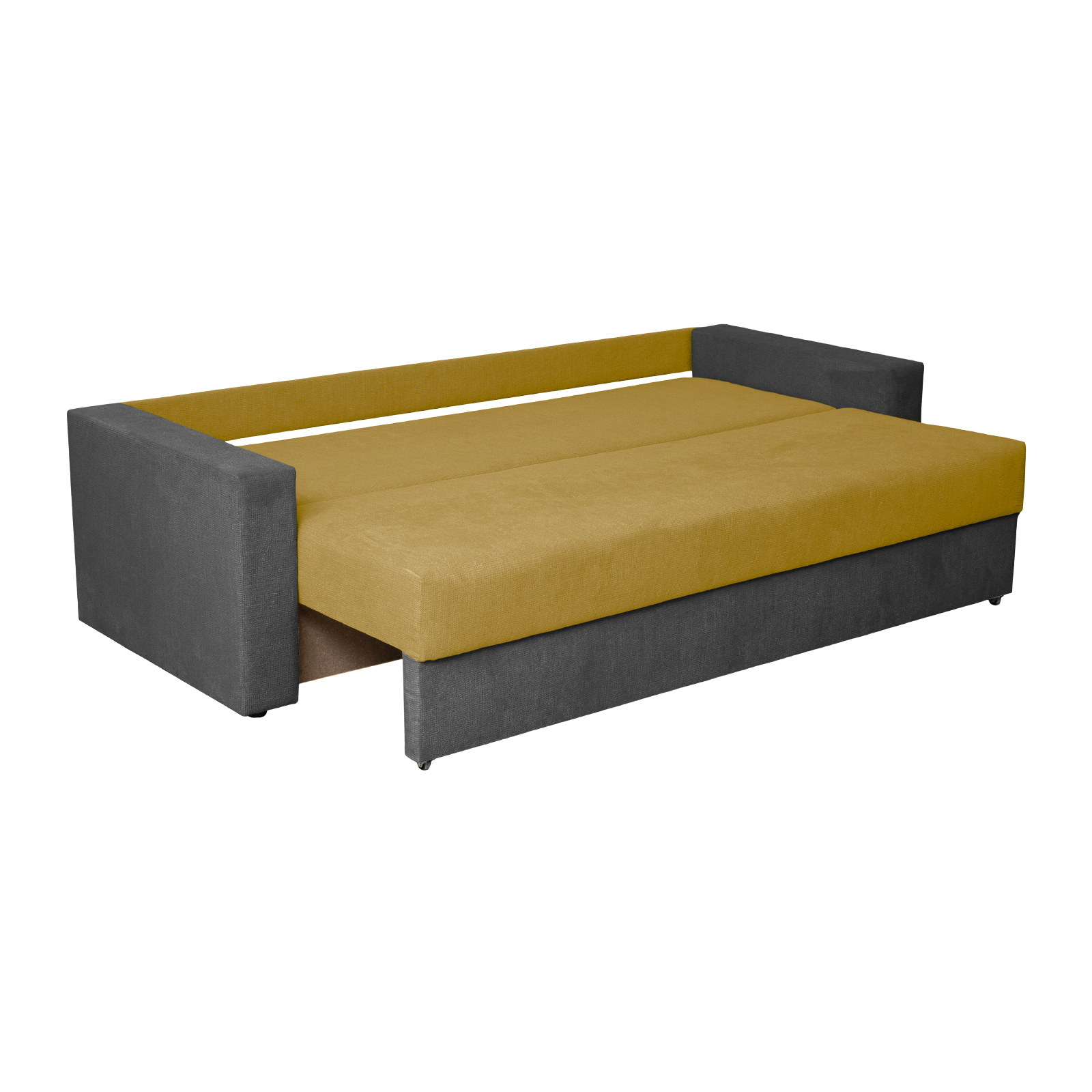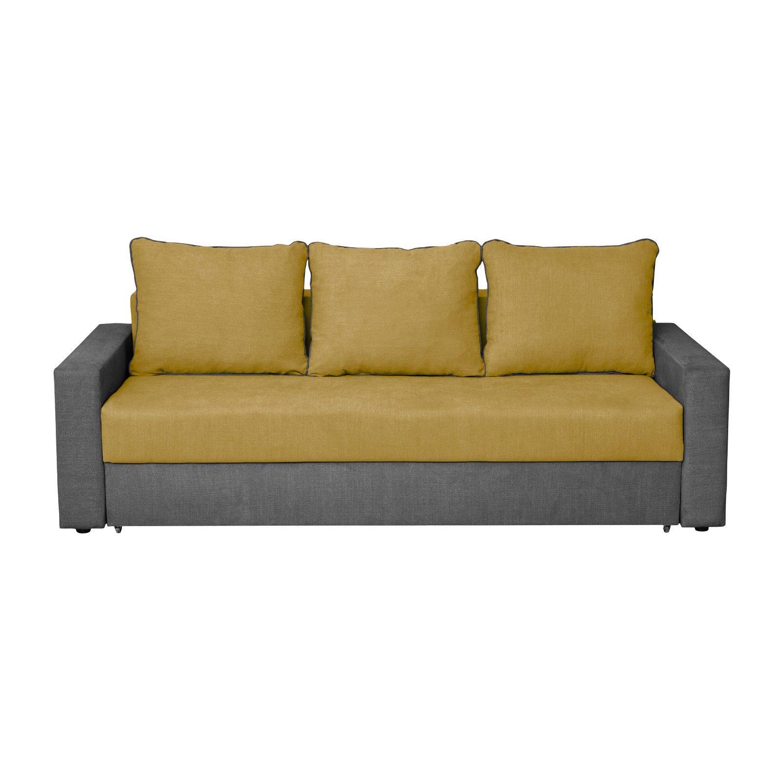 Canapea NICO II 3L extensibila, 3 locuri, cu arcuri si lada depozitare, gri inchis + galben, 220x85x75 cm