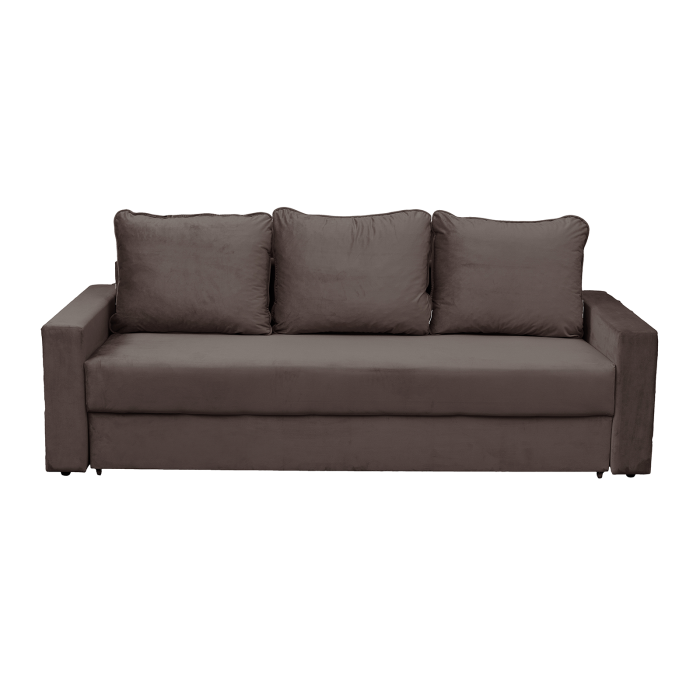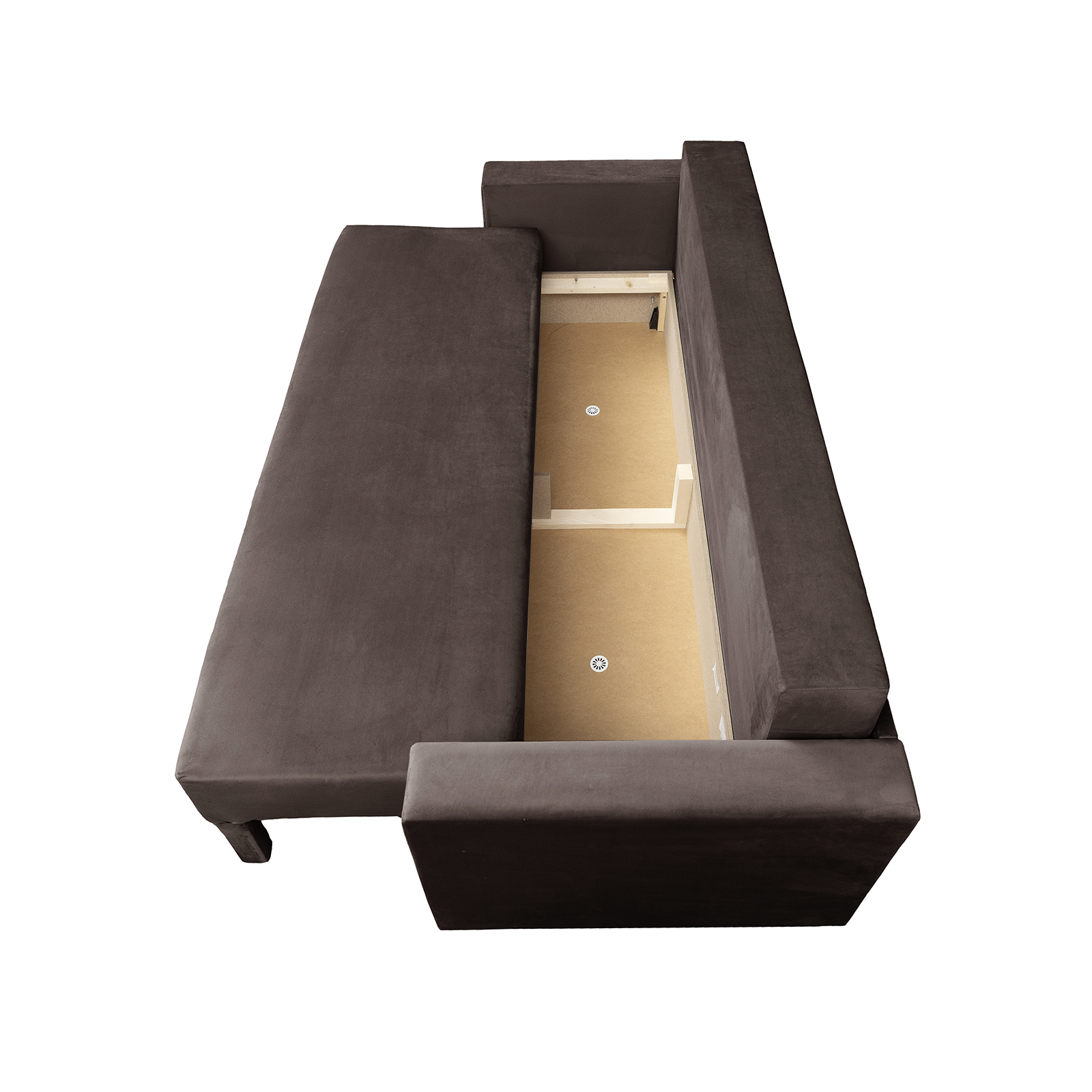 Canapea NICO II extensibila, 3 locuri, cu arcuri si lada depozitare, maro, 220x85x75 cm