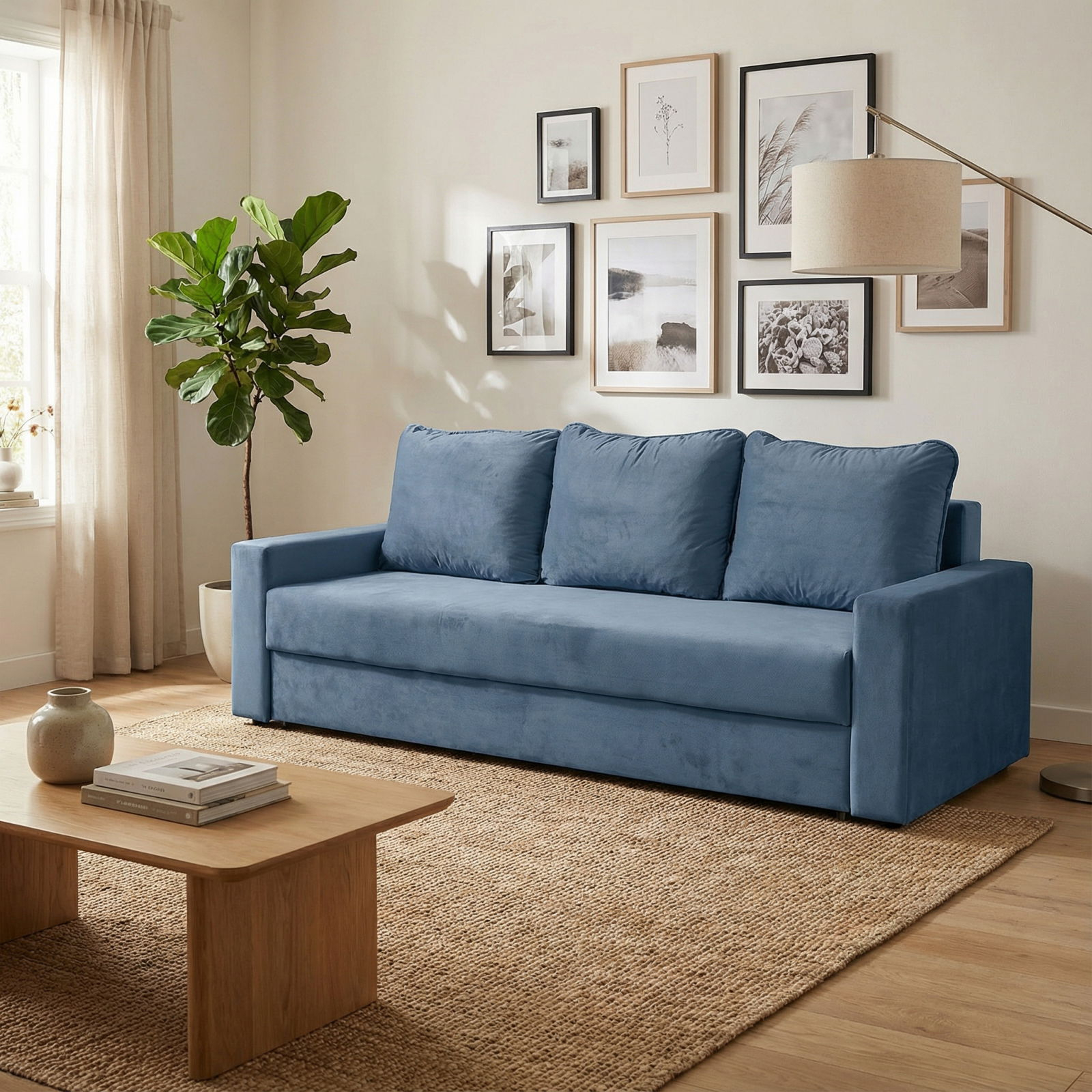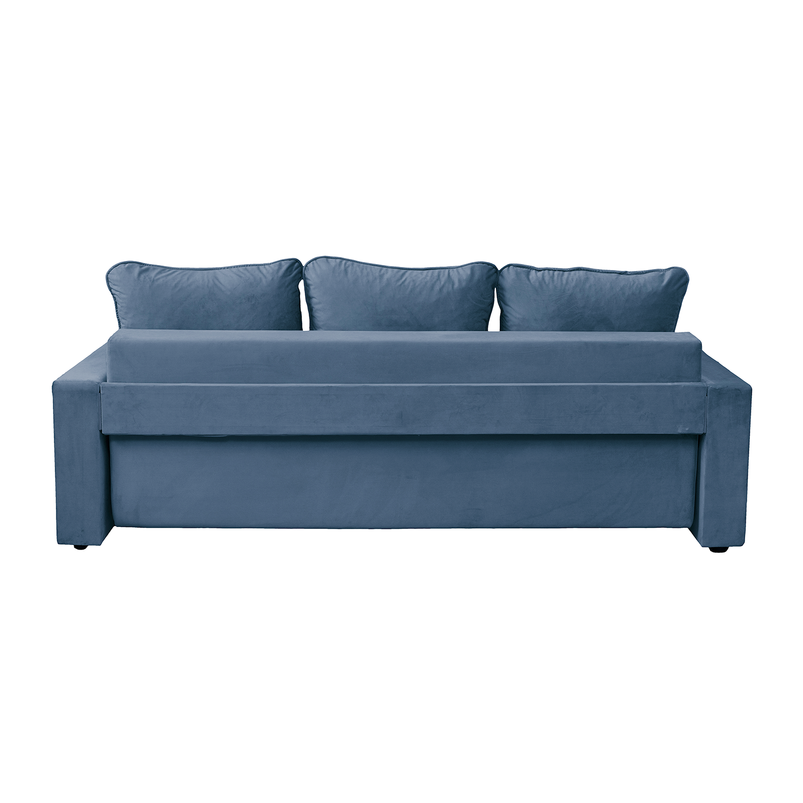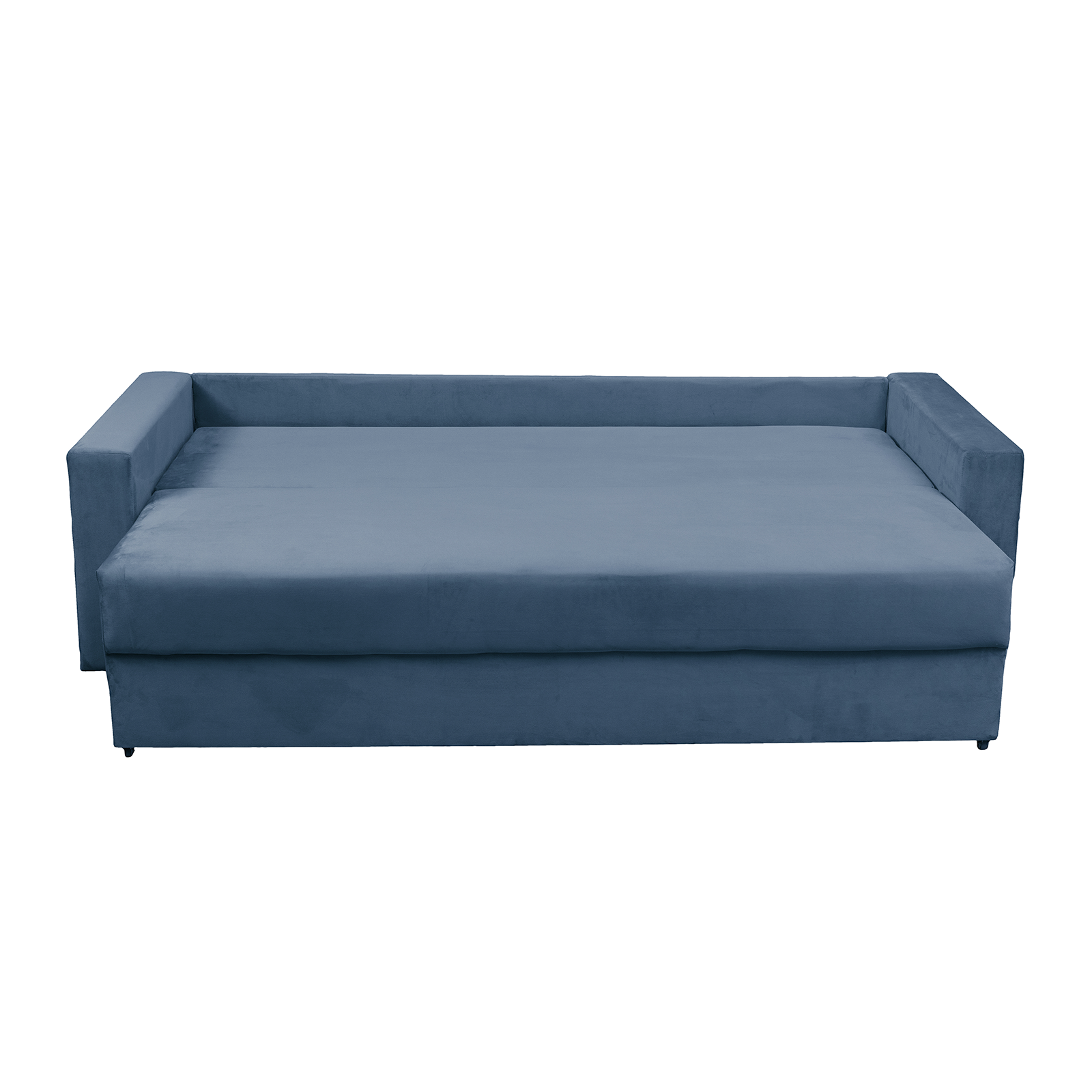 Canapea NICO II extensibila, 3 locuri, cu arcuri si lada depozitare, albastru, 220x85x75 cm