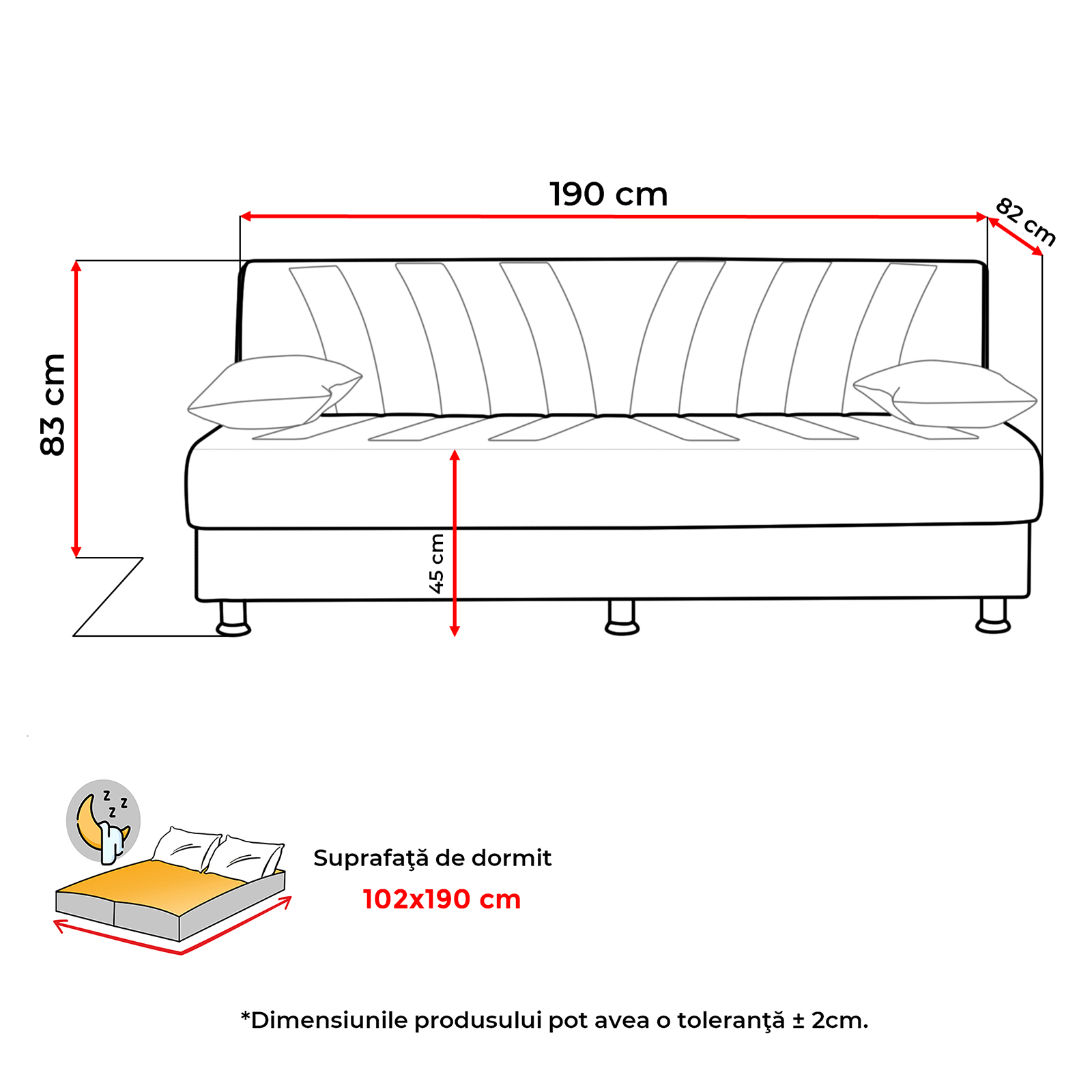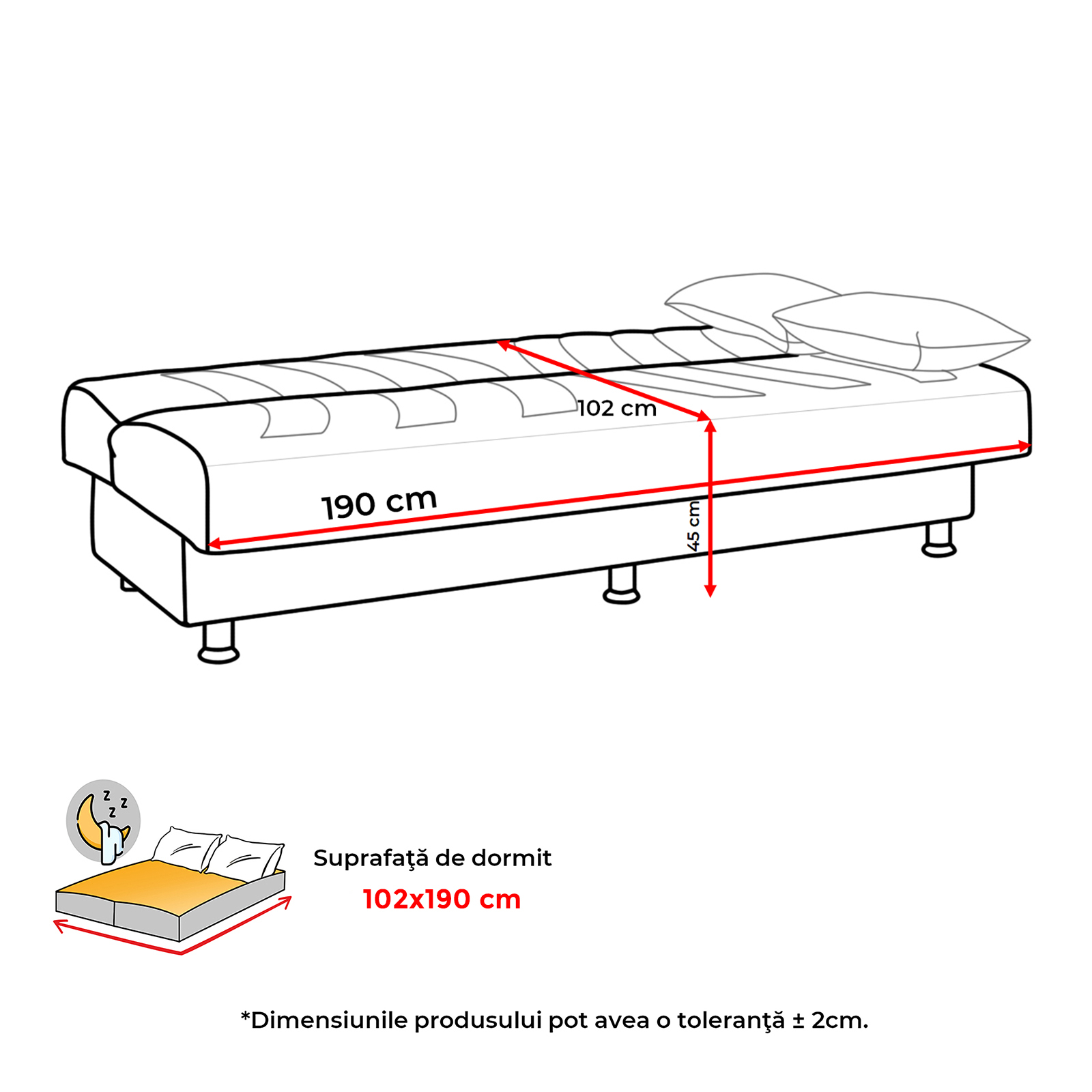 Materiale: PAL, Arcuri tip bonnel, Stofa, Spuma poliuretanica, Cadru lemn masiv
