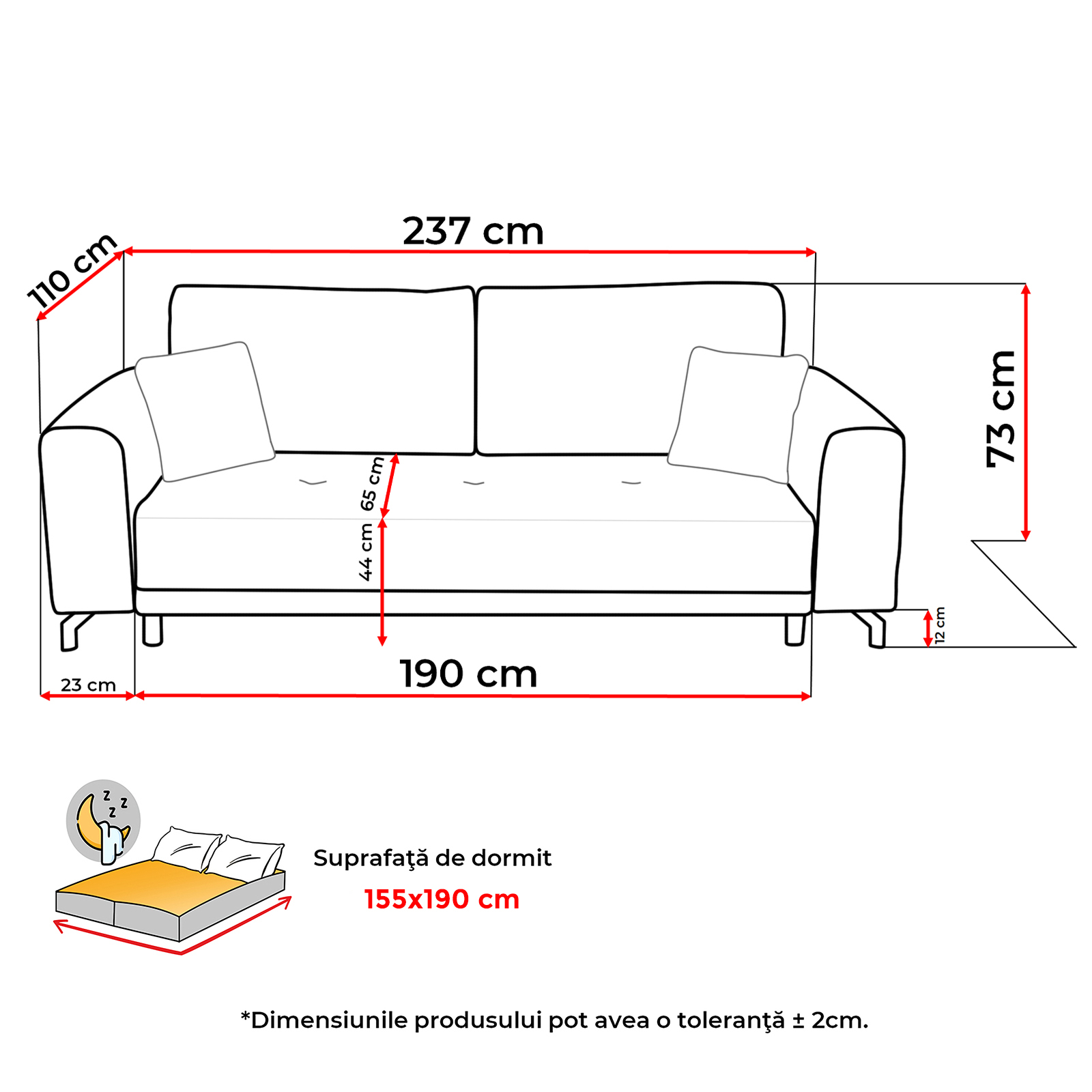 Suprafata dormit: 155x190 cm
