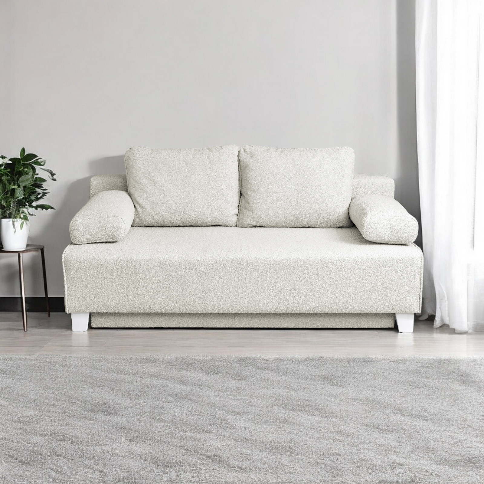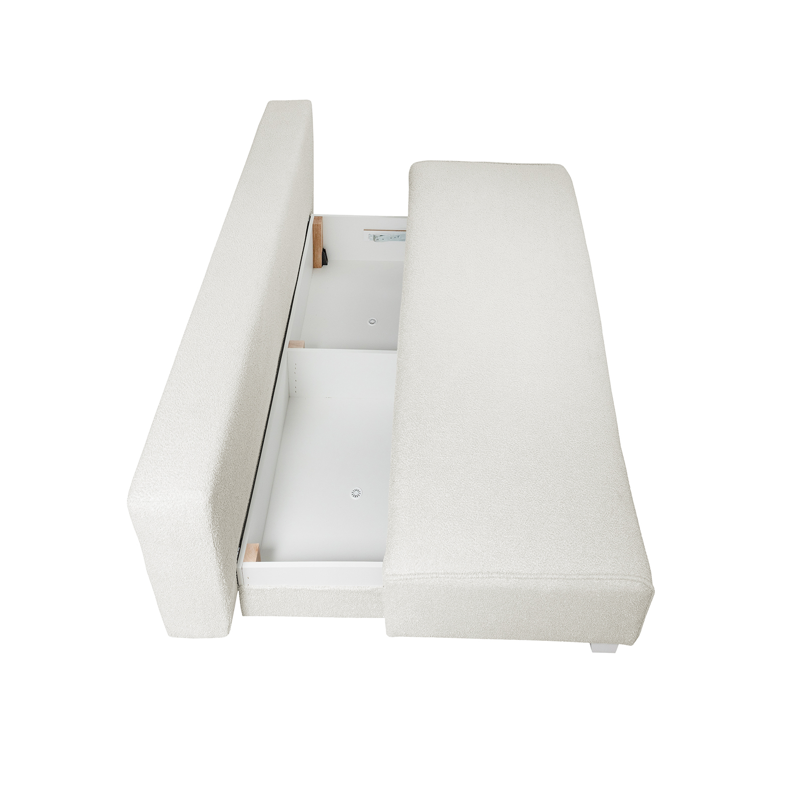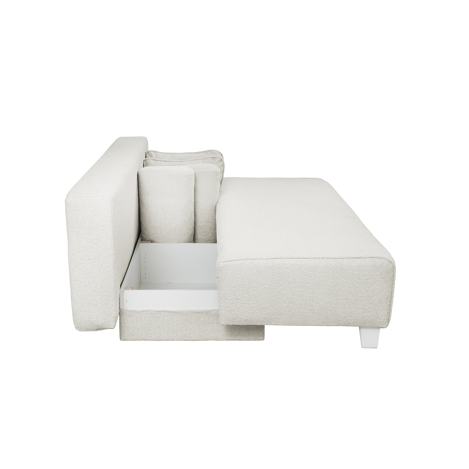 Canapea YASMIN II BUCLE extensibila, 3 locuri, cu arcuri si lada depozitare, bej, 190x100x90 cm