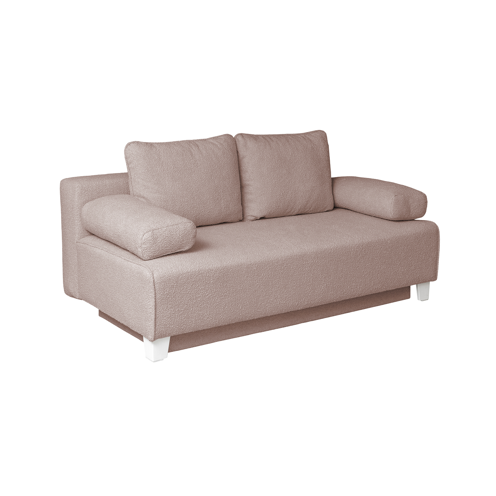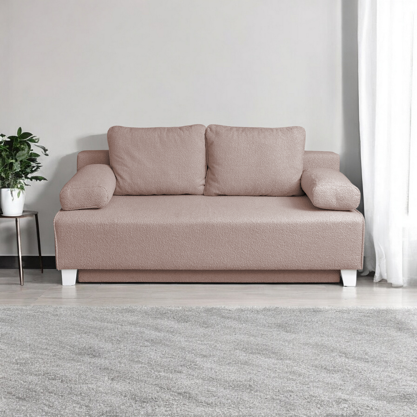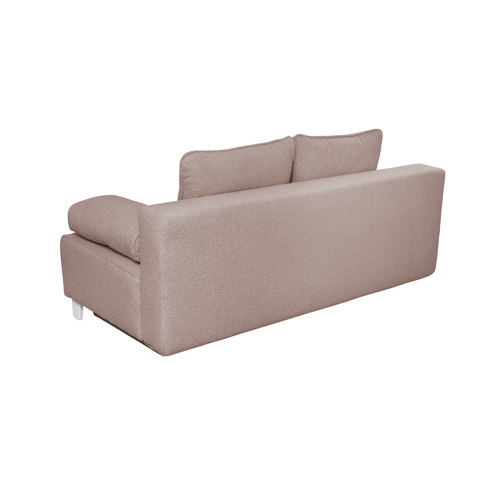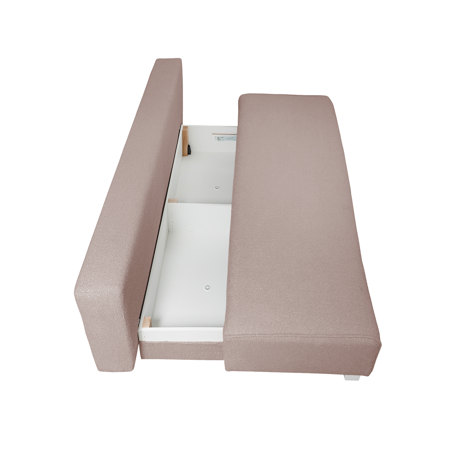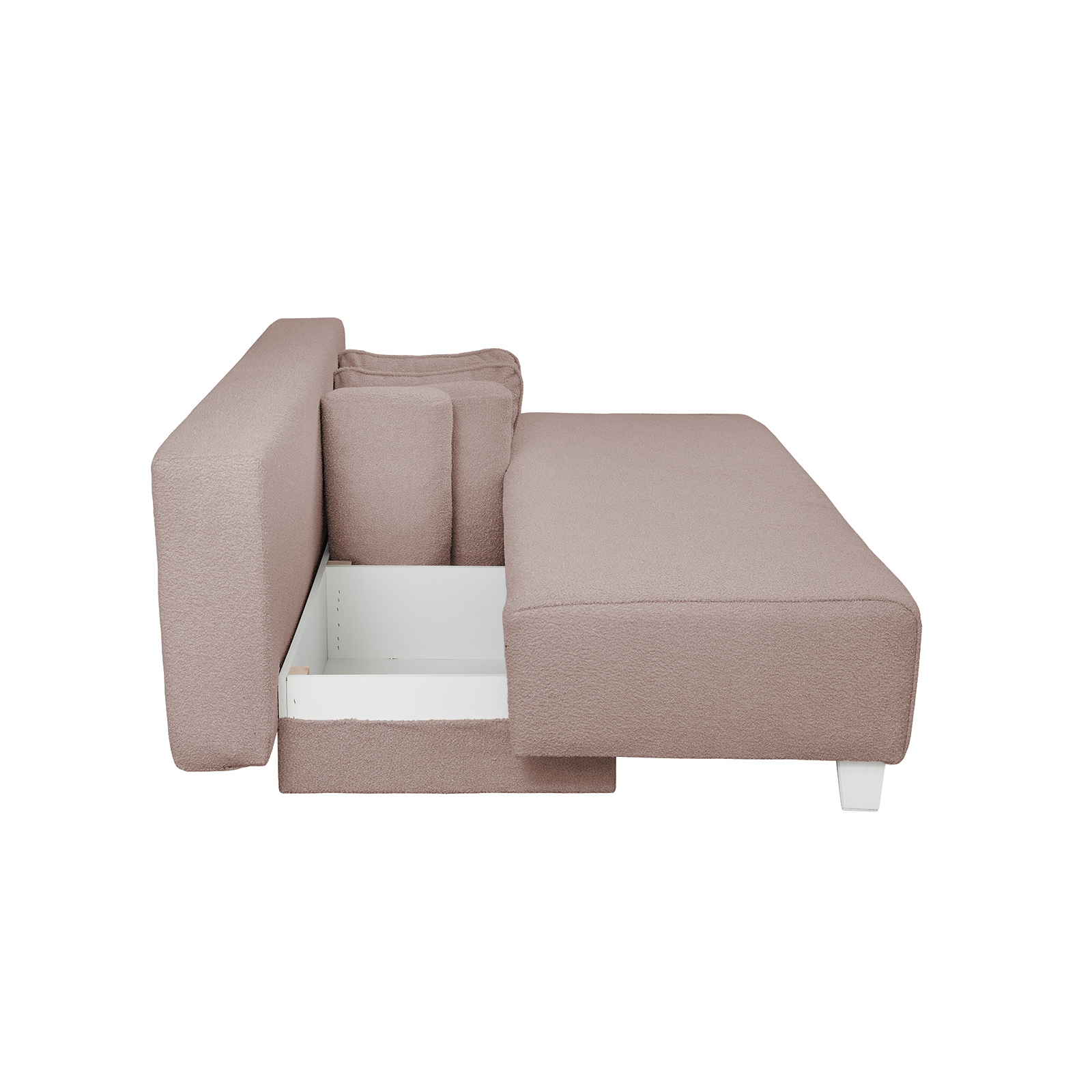 Canapea YASMIN II BUCLE extensibila, 3 locuri, cu arcuri si lada depozitare, roz pudra, 190x100x90 cm