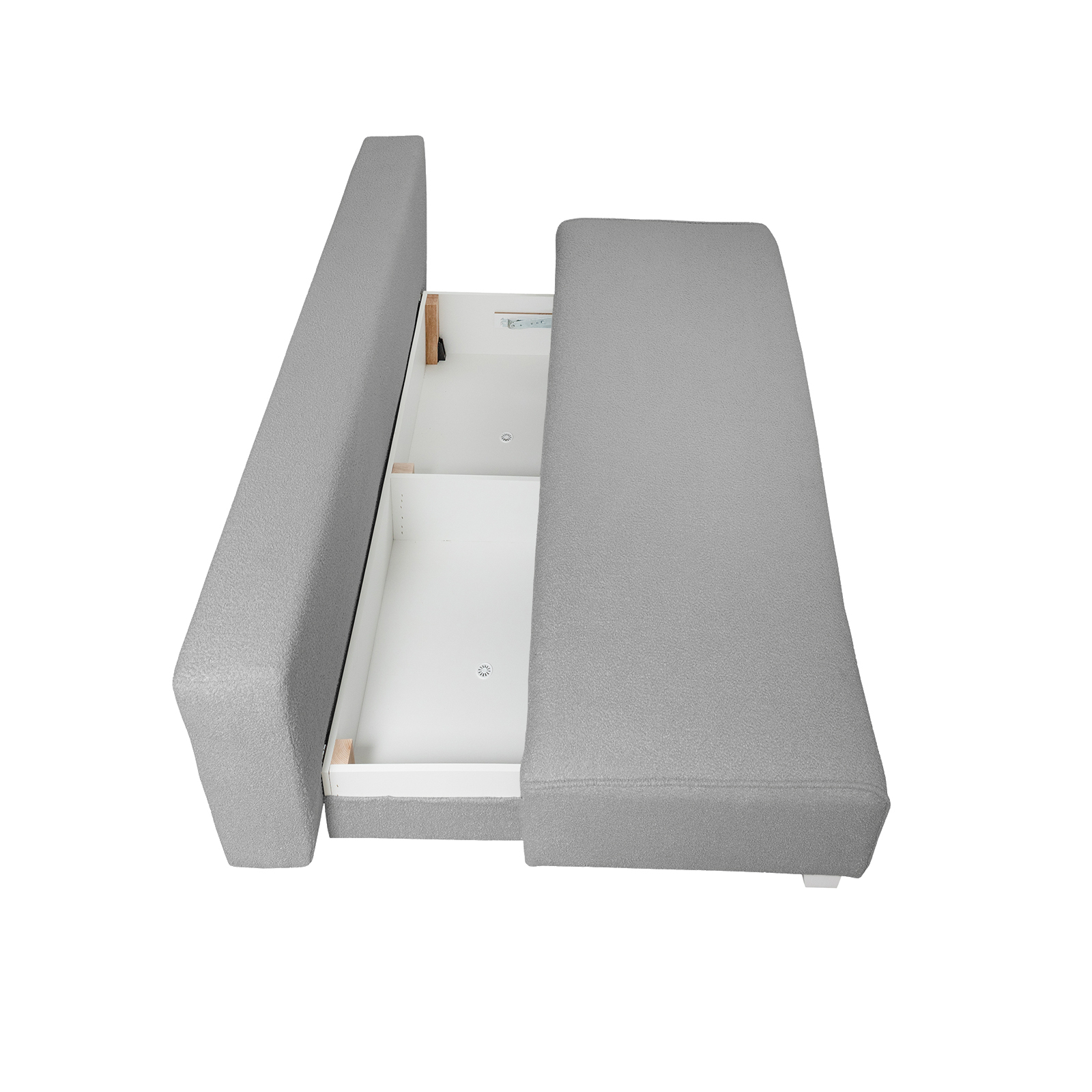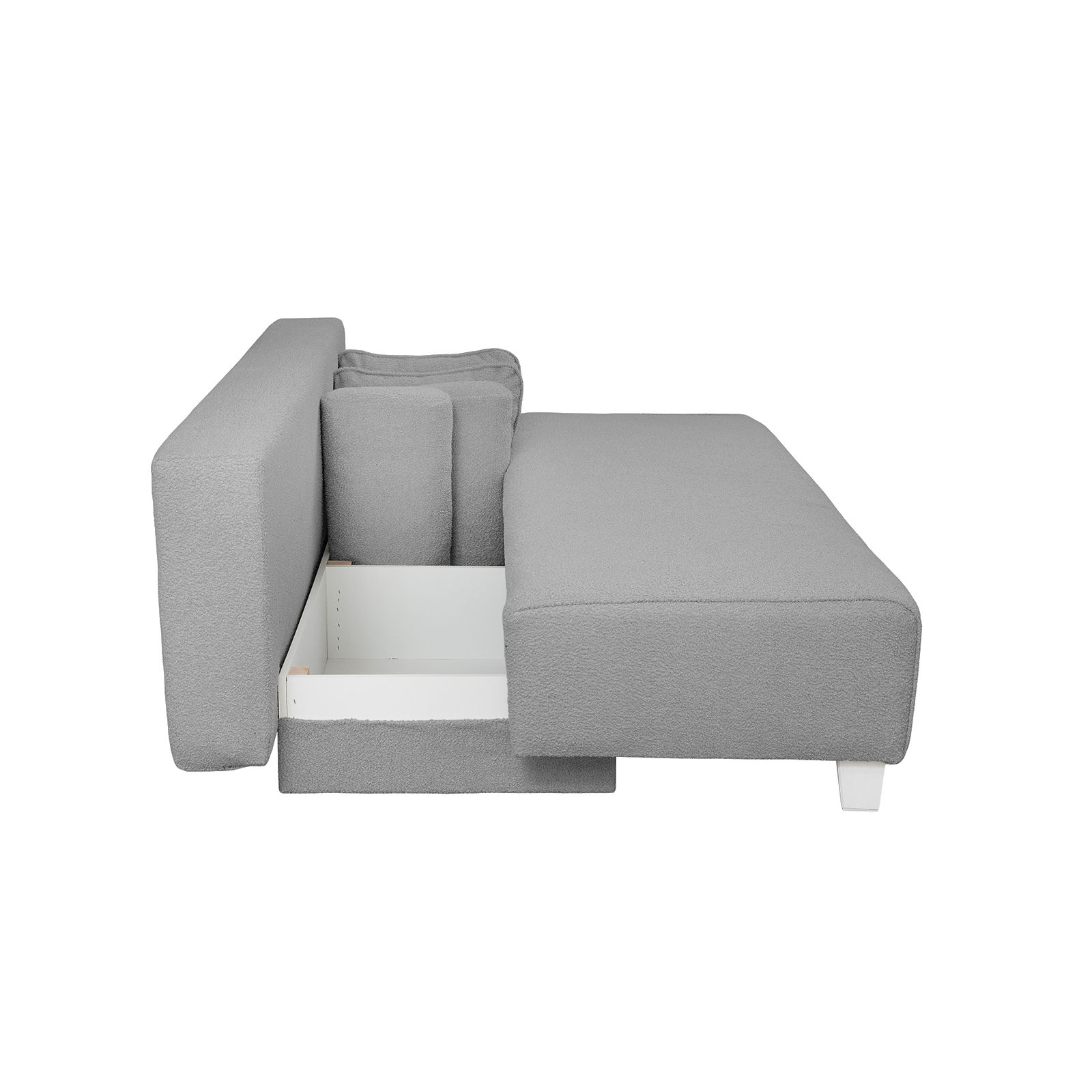 Canapea YASMIN II BUCLE extensibila, 3 locuri, cu arcuri si lada depozitare, gri deschis, 190x100x90 cm