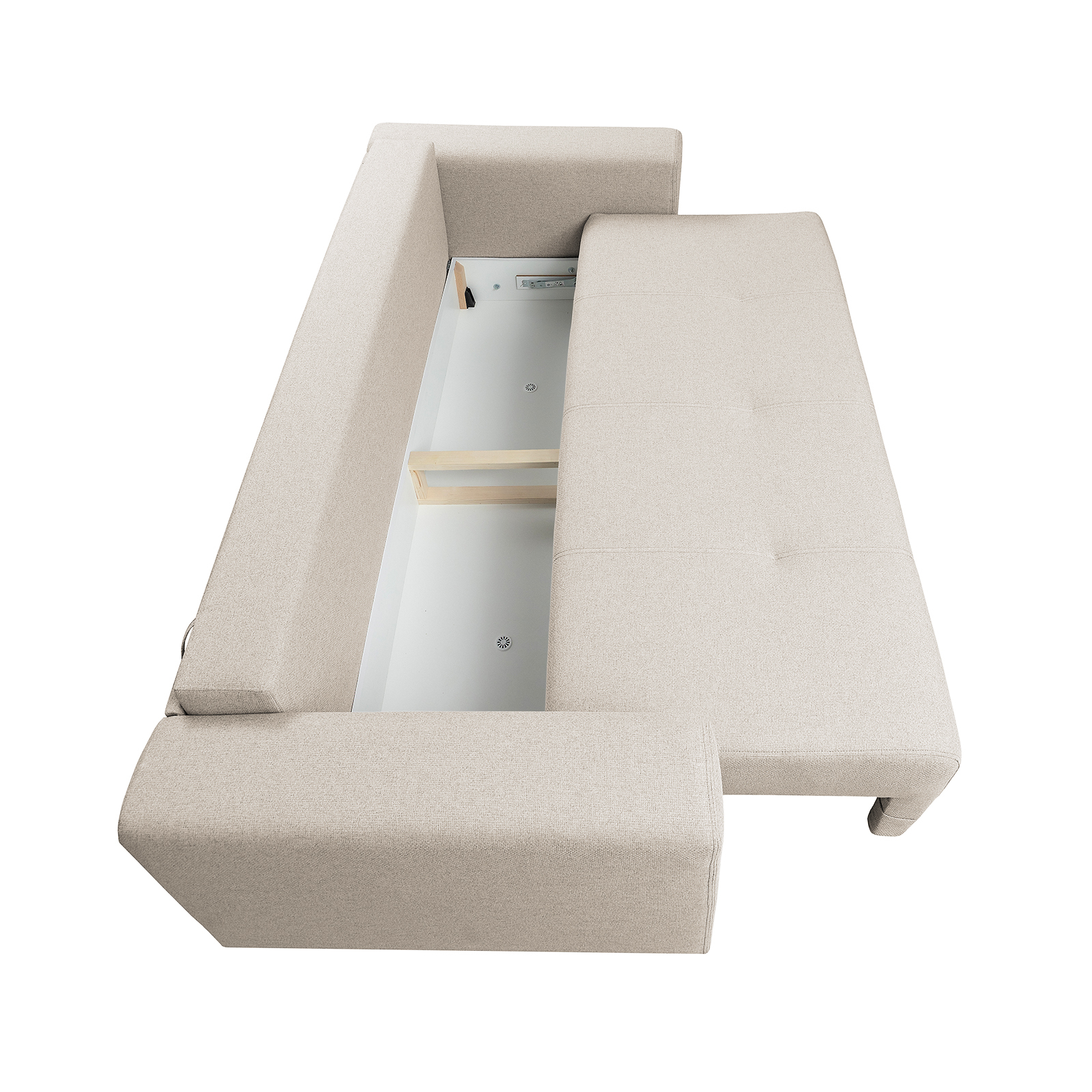 Canapea BERNA B extensibila, 3 locuri, cu arcuri si lada depozitare, bej, 238x108x77 cm