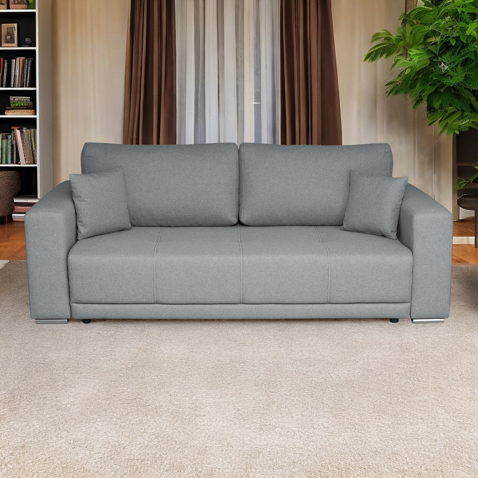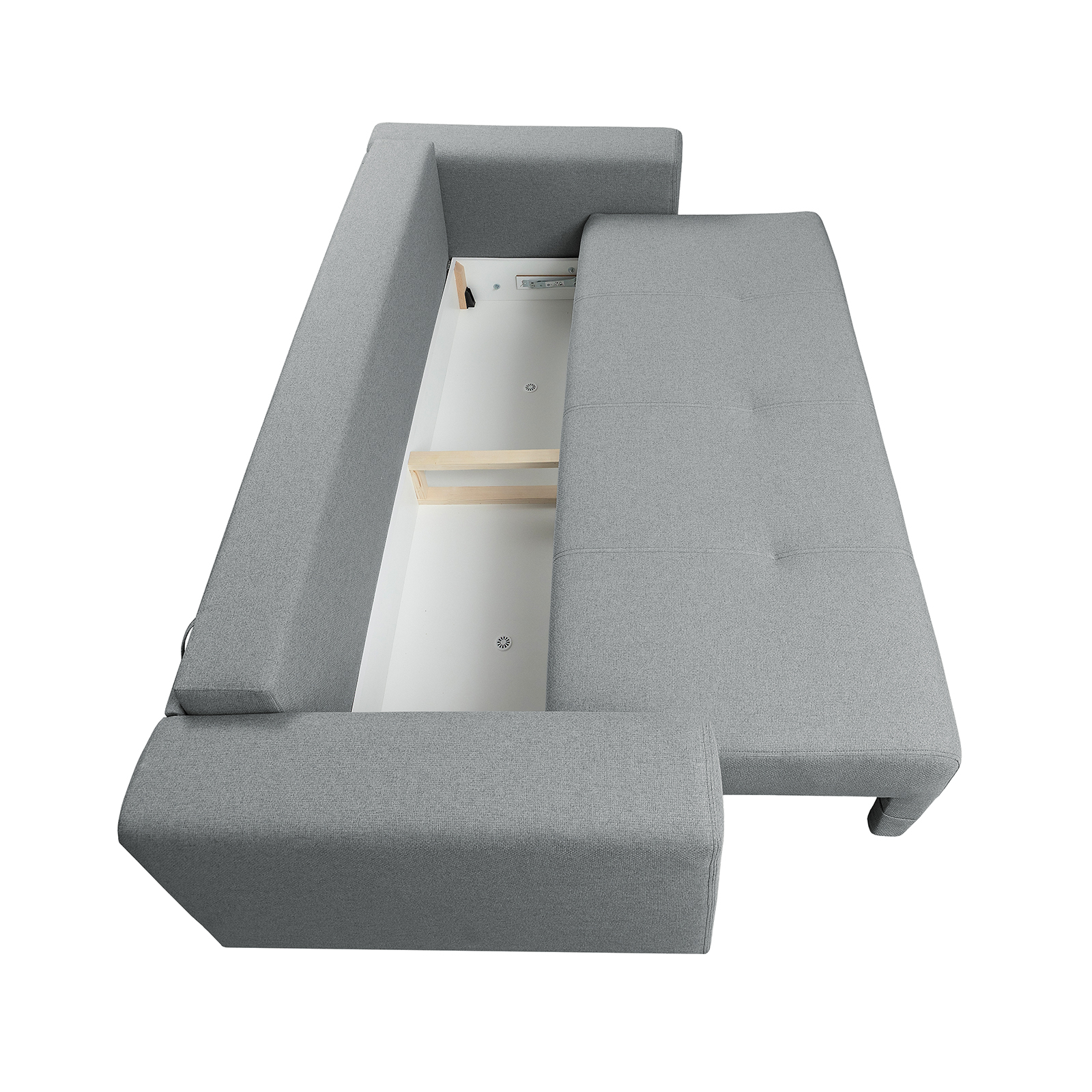 Canapea BERNA B extensibila, 3 locuri, cu arcuri si lada depozitare, gri deschis, 238x108x77 cm