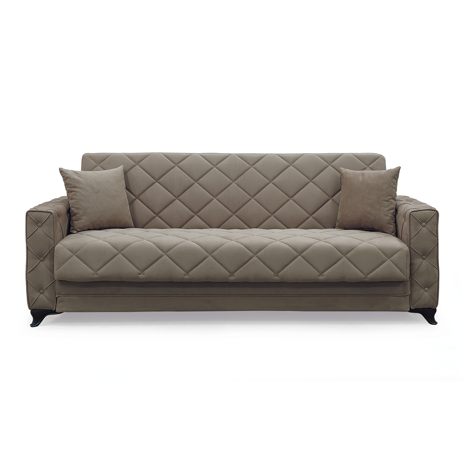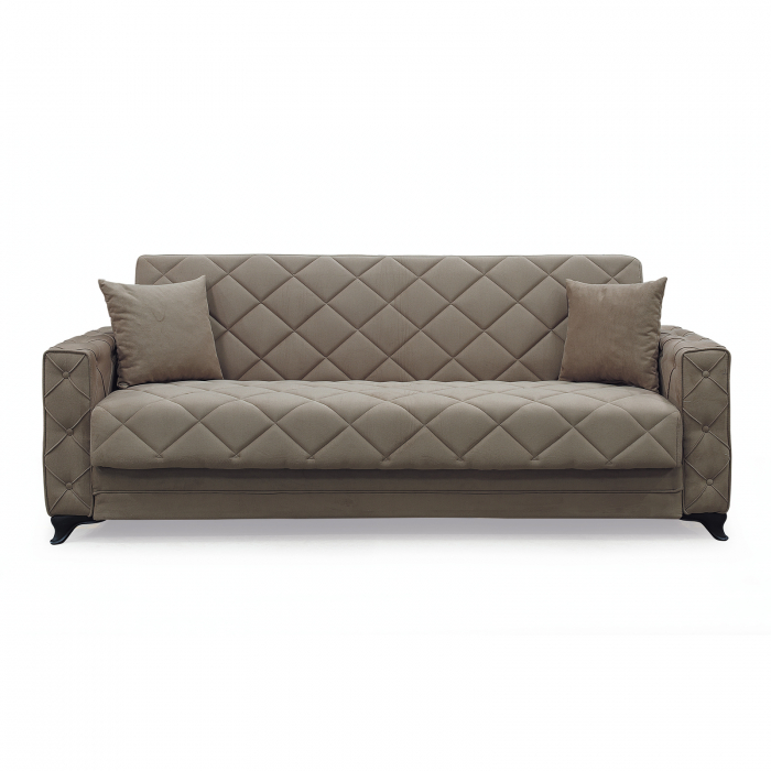 Canapea extensibila HEGEL, 3 locuri, cu arcuri si lada pentru depozitare, maro, 228x85x85 cm