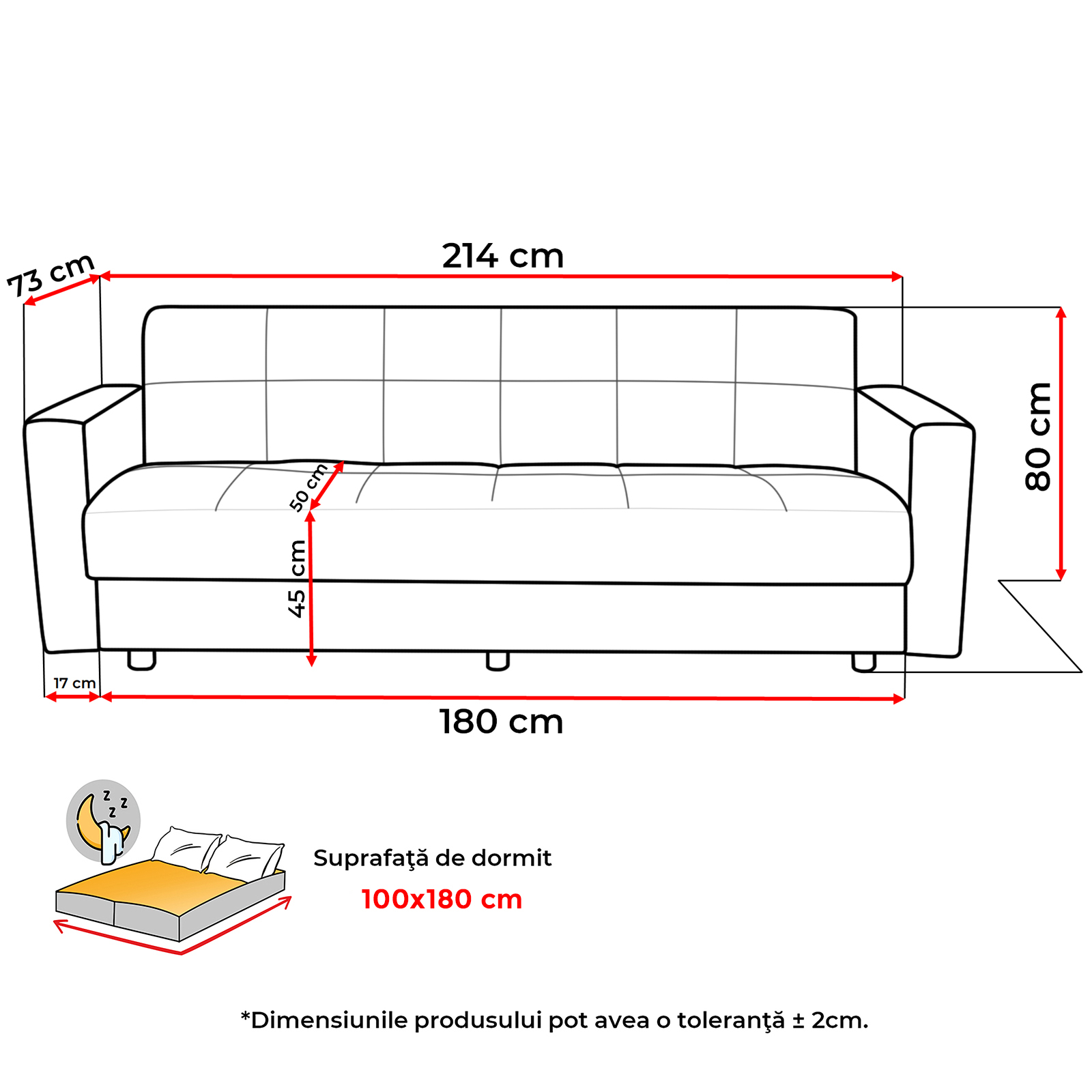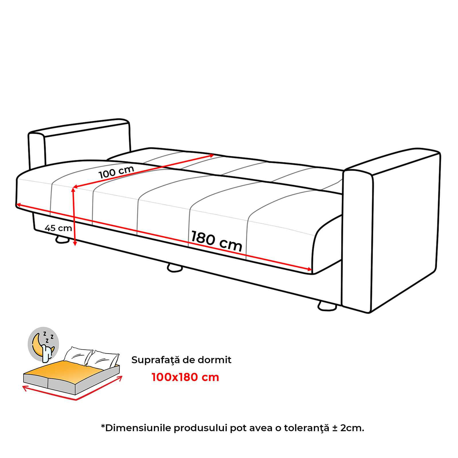 Suprafata dormit: 100x180 cm