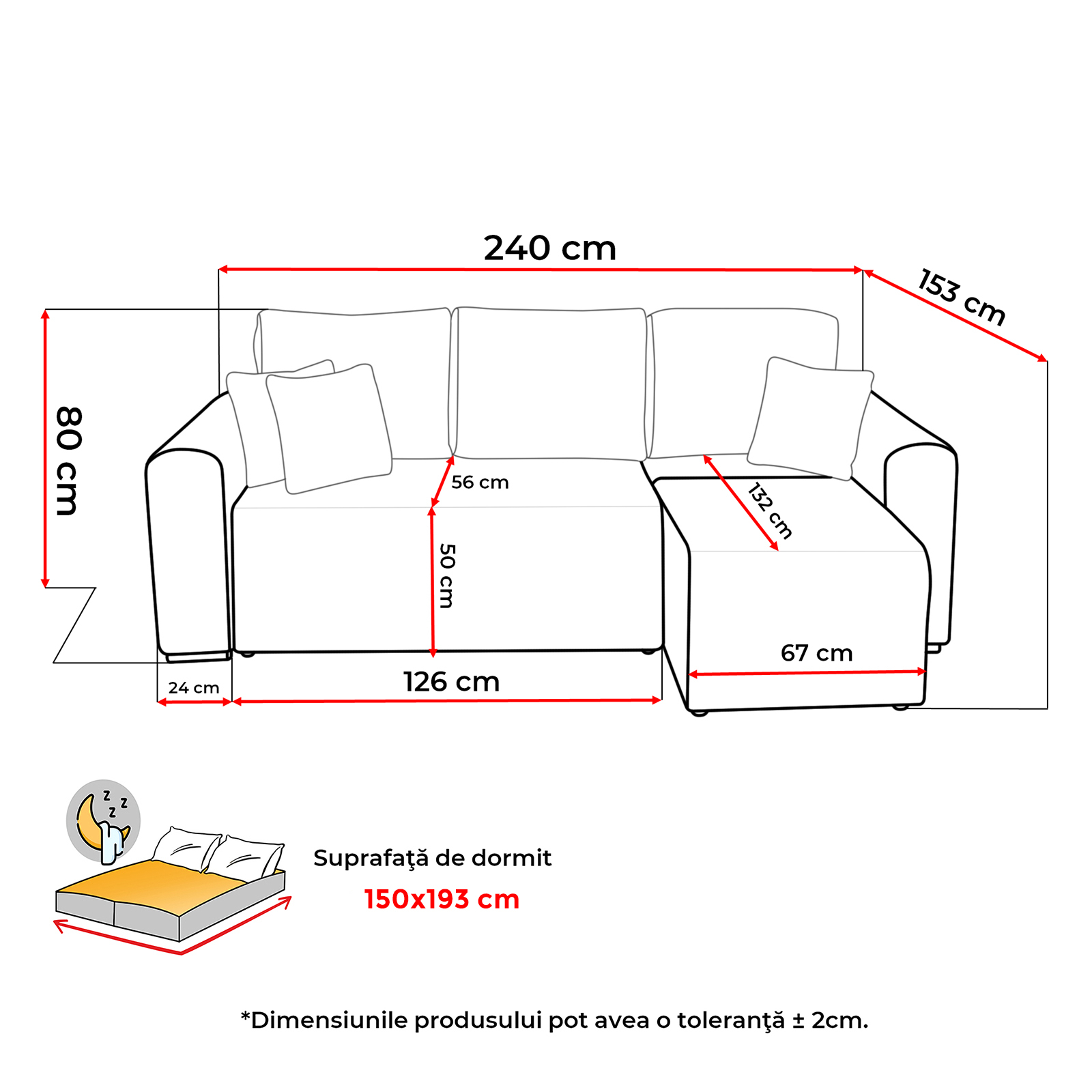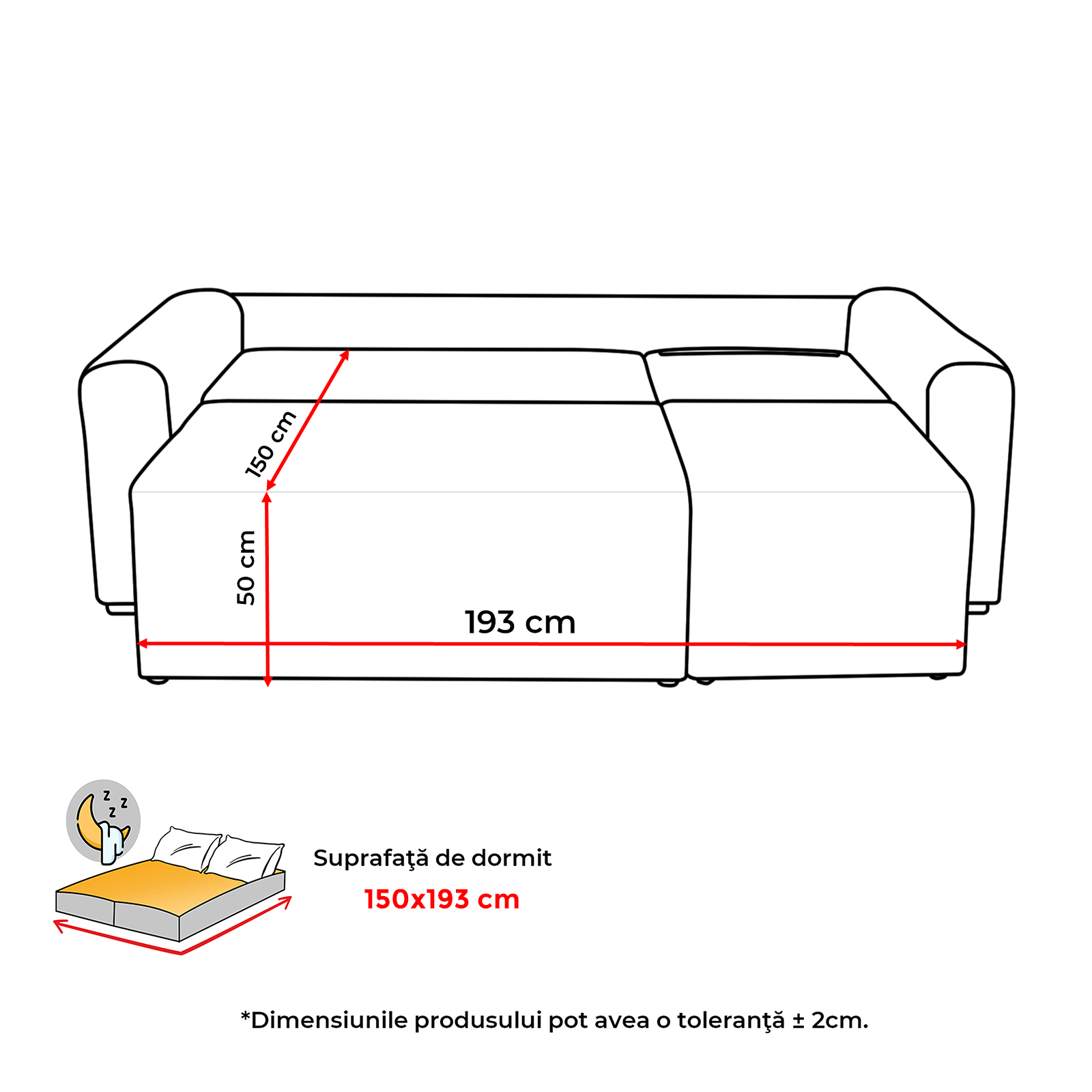 Suprafata dormit: 150x193 cm