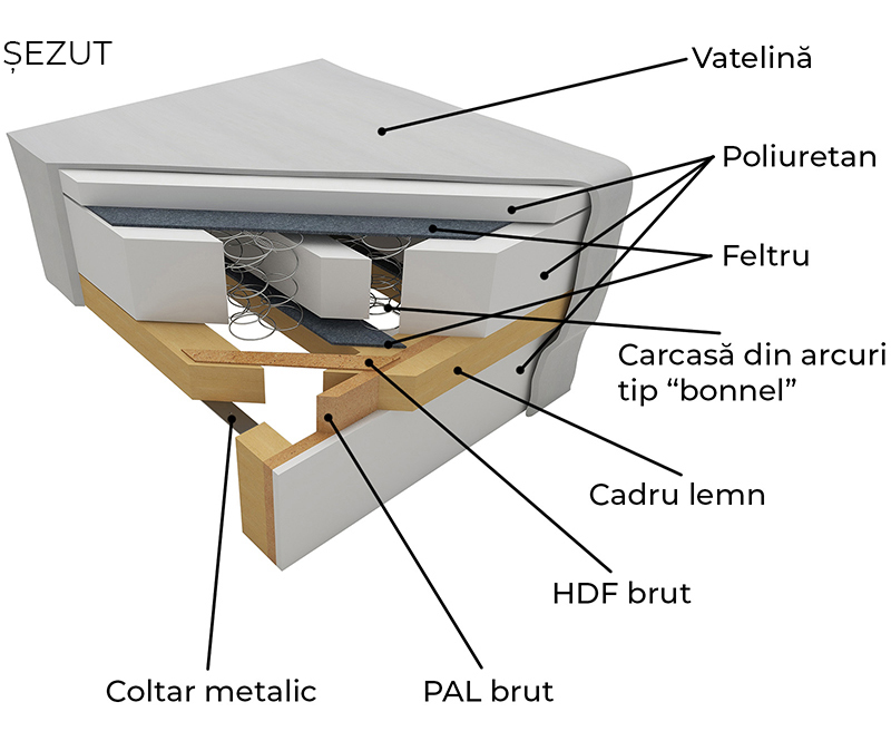 Structura sezut: cu arcuri bonnel (tip „relaxa”)