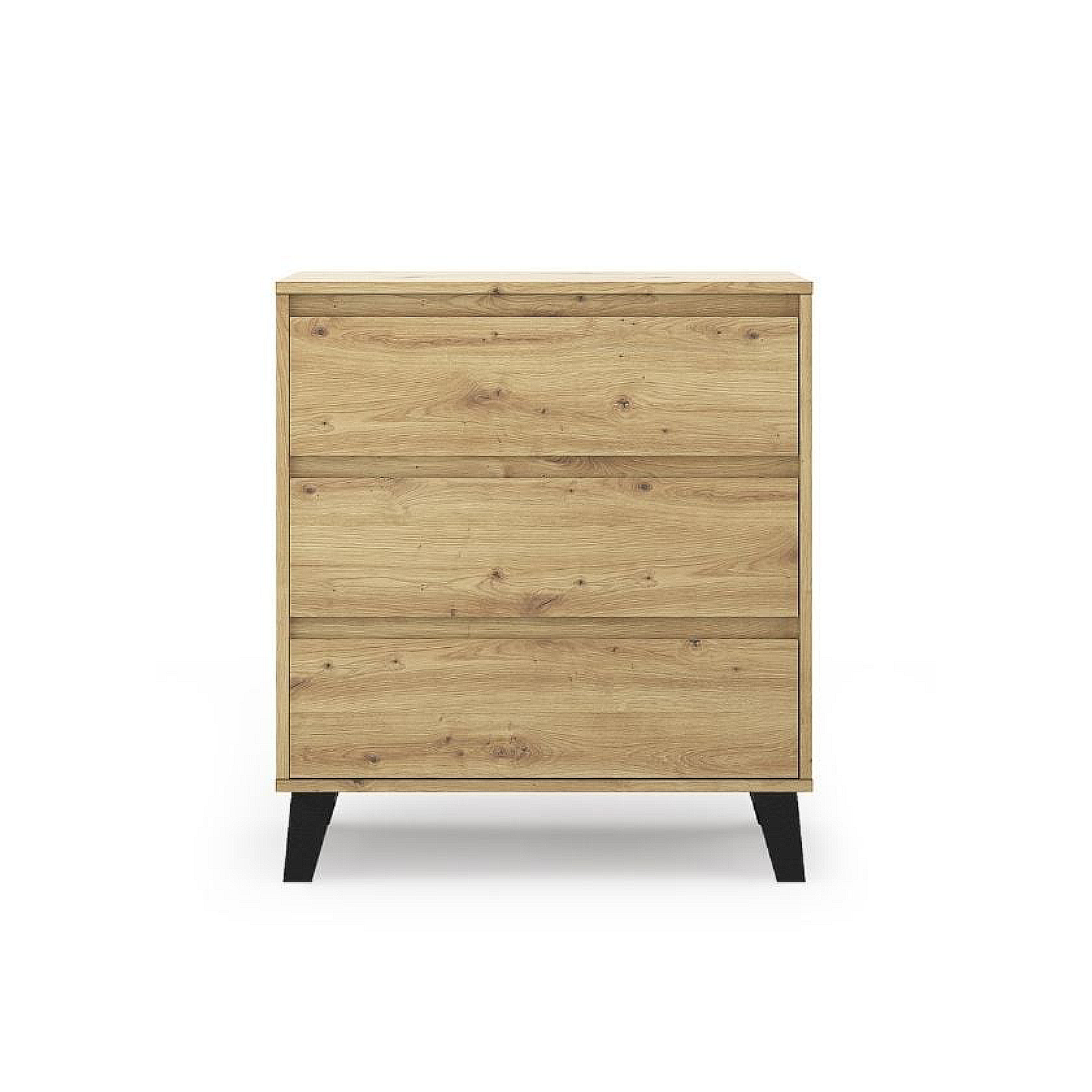 Comoda BORG în decor stejar artisan cu 3 sertare este o alegere excelentă pentru persoanele care caută un mobilier practic și elegant pentru depozitare. Datorită construcției sale, oferă un spațiu generos pentru organizarea hainelor, lenjeriei, accesoriilor sau documentelor.