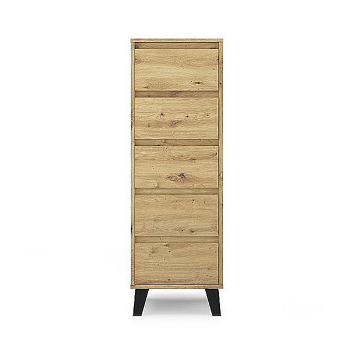 Comoda BORG în decor stejar artisan cu 5 sertare este o soluție excelentă pentru cei care caută un mobilier practic și elegant pentru depozitare. Datorită construcției sale, oferă un spațiu generos pentru organizarea hainelor, lenjeriei, accesoriilor sau documentelor.