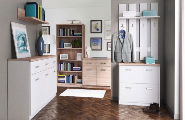 Comoda TOP MIX este concepută astfel încât să includă atât sertar, cât și rafturi tradiționale – elemente apreciate de utilizatori. Forma sa simplă este ideală pentru iubitorii stilului minimalist. Este disponibilă în două variante de culoare: stejar sonoma și alb combinat cu un blat ce imită lemnul. Este o alegere excelentă pentru amenajarea spațiilor mici și se potrivește perfect în living, camera de tineret sau hol.