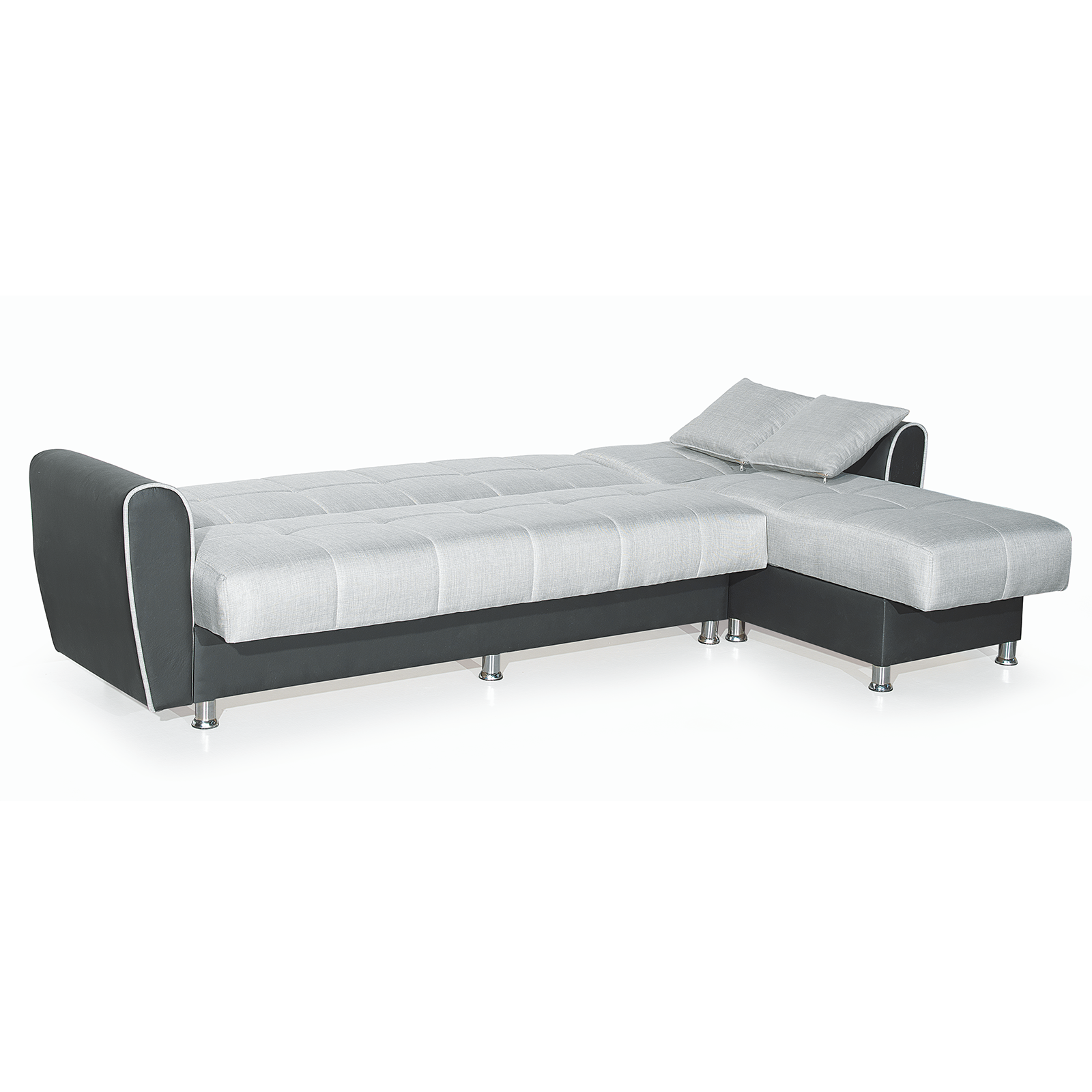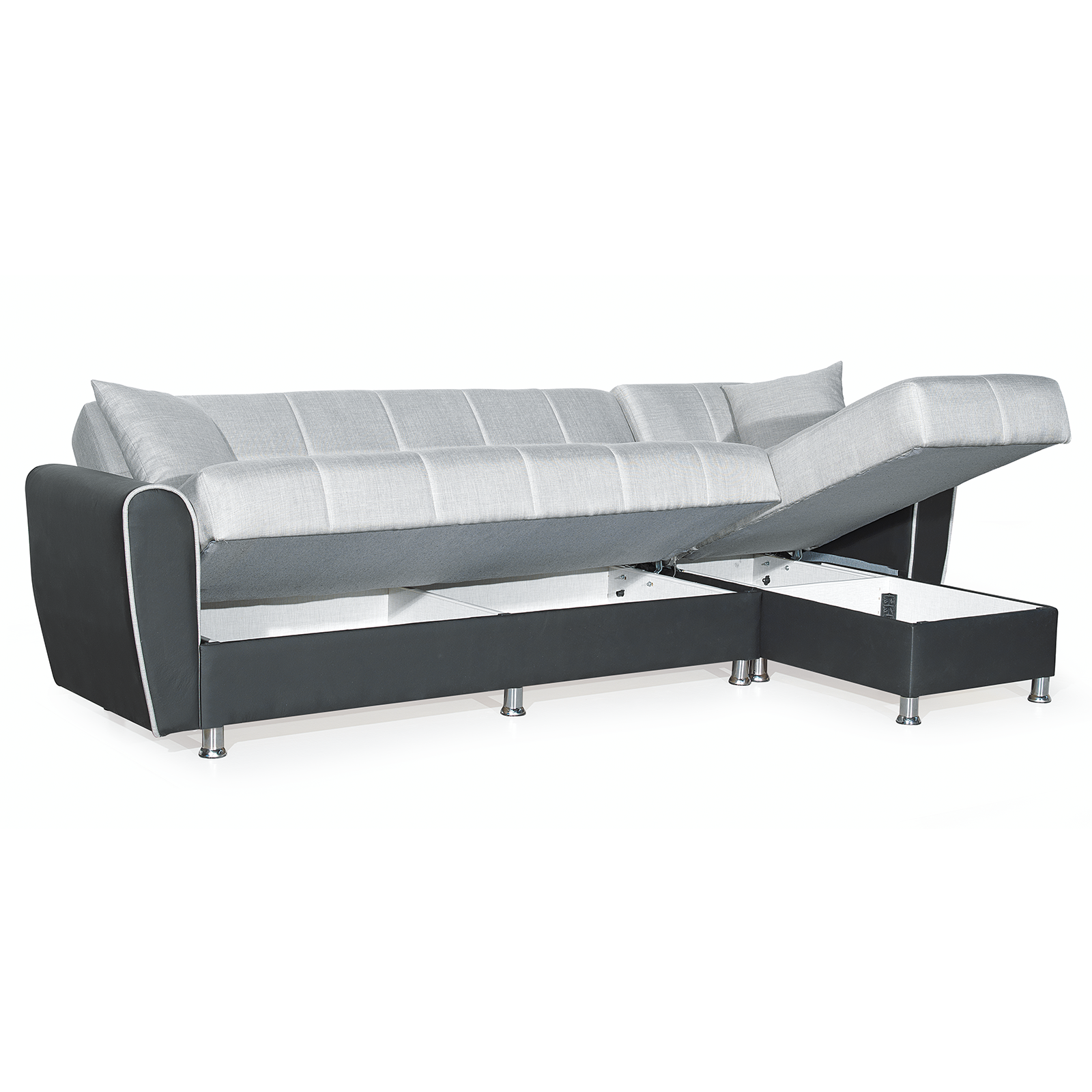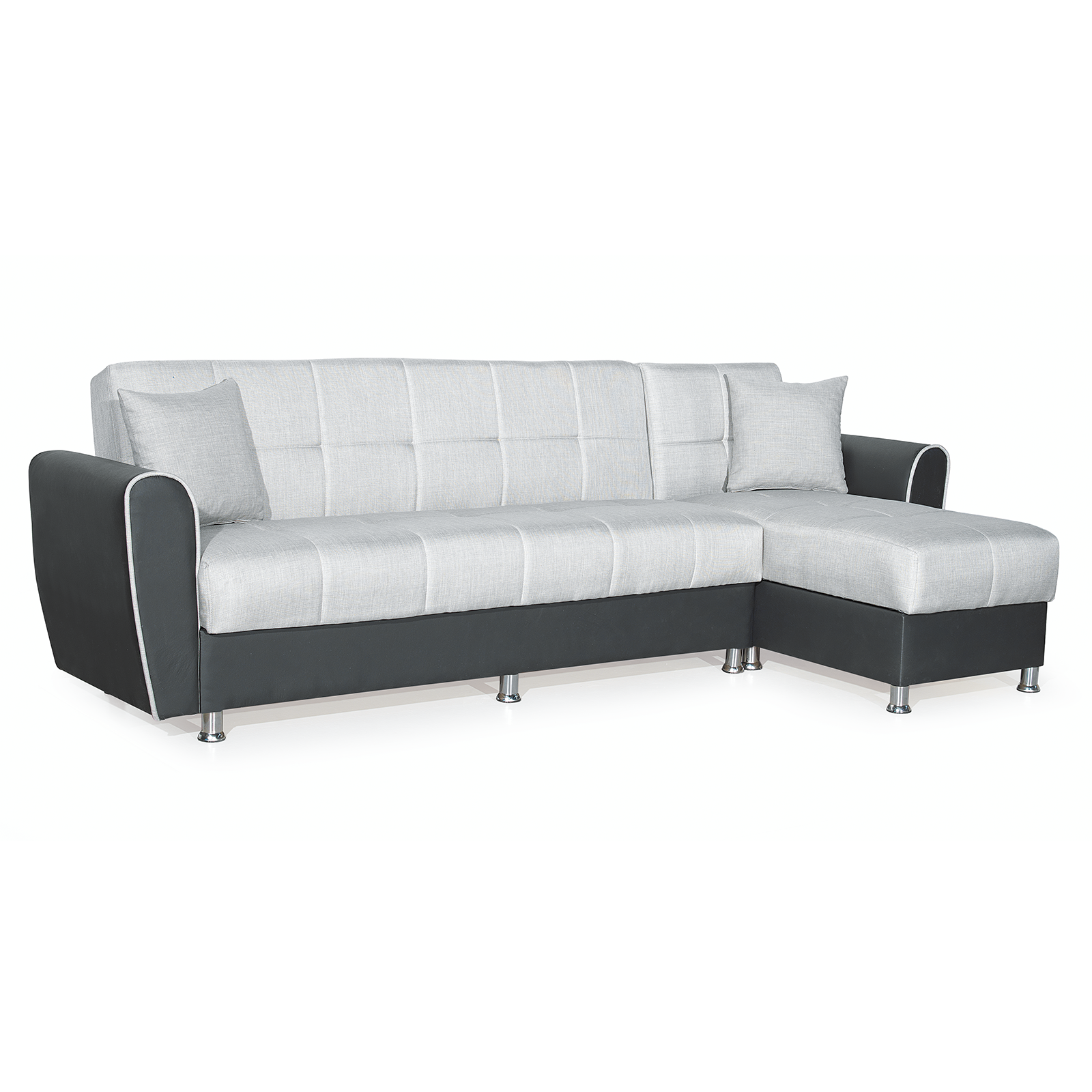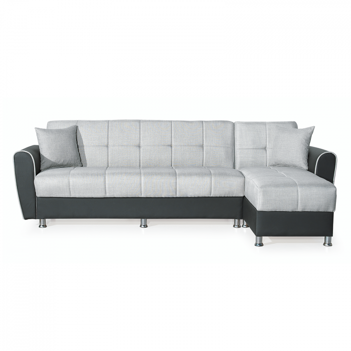 Coltar ANGELA extensibil, cu lada depozitare, colt interschimbabil, gri, 283x165x83 cm