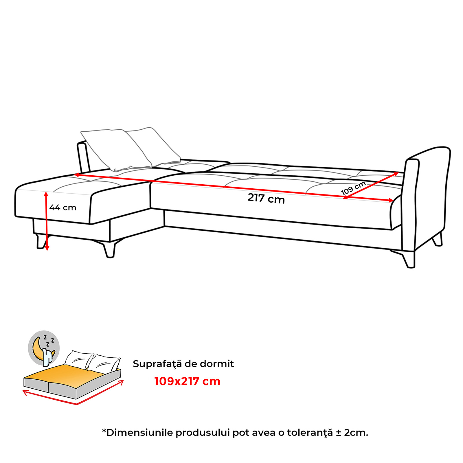 Coltar LOREN extensibil, cu lada depozitare, colt interschimbabil, albastru, 240x143x85 cm