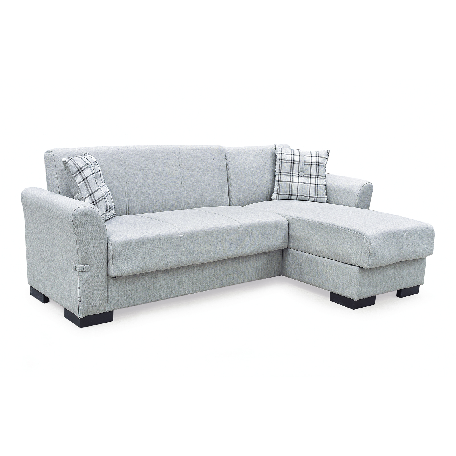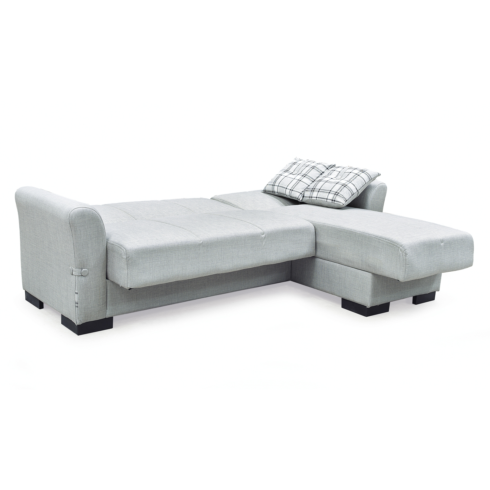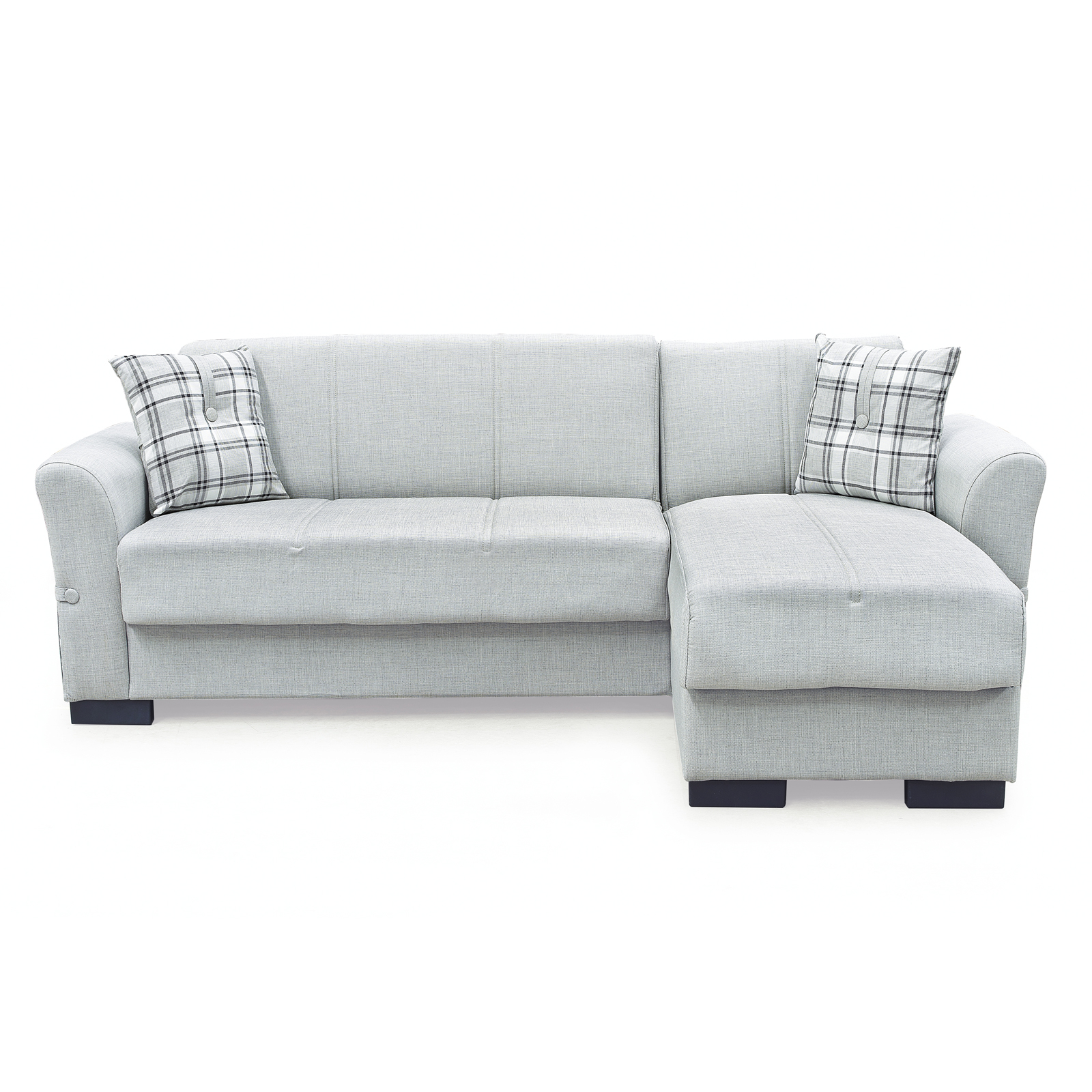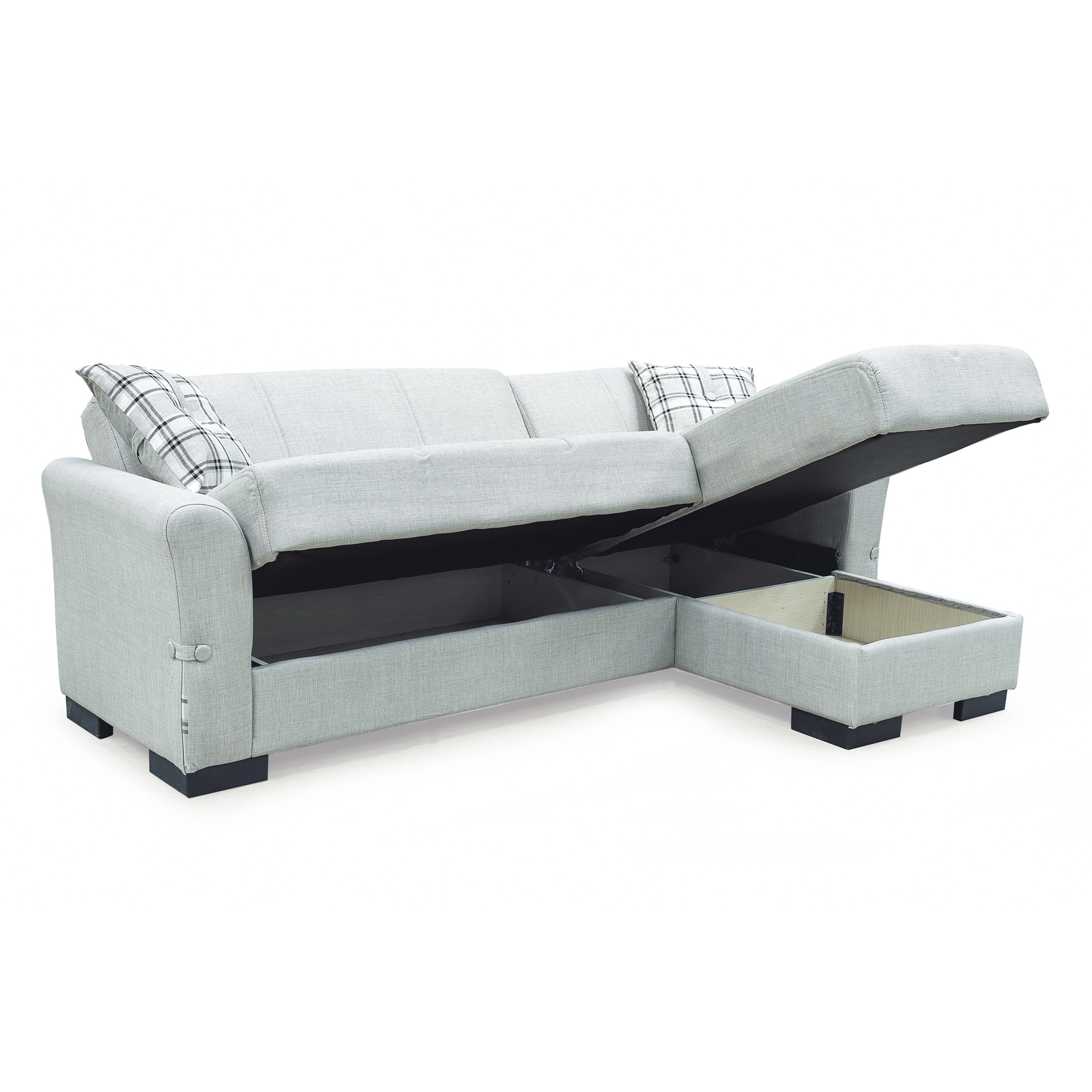 Coltar FLAMINGO extensibil, cu lada depozitare, colt interschimbabil, gri deschis + print, 240x145x80 cm