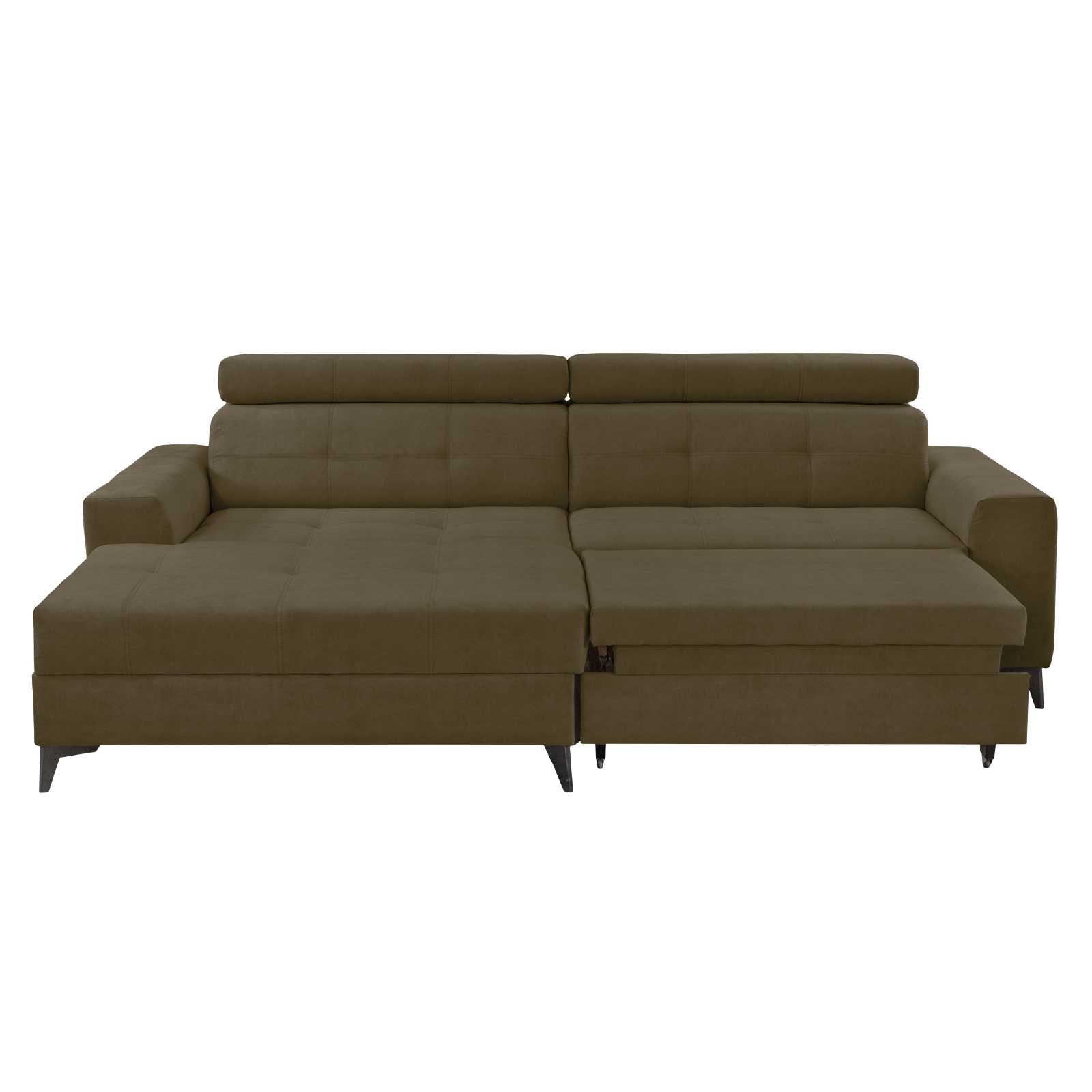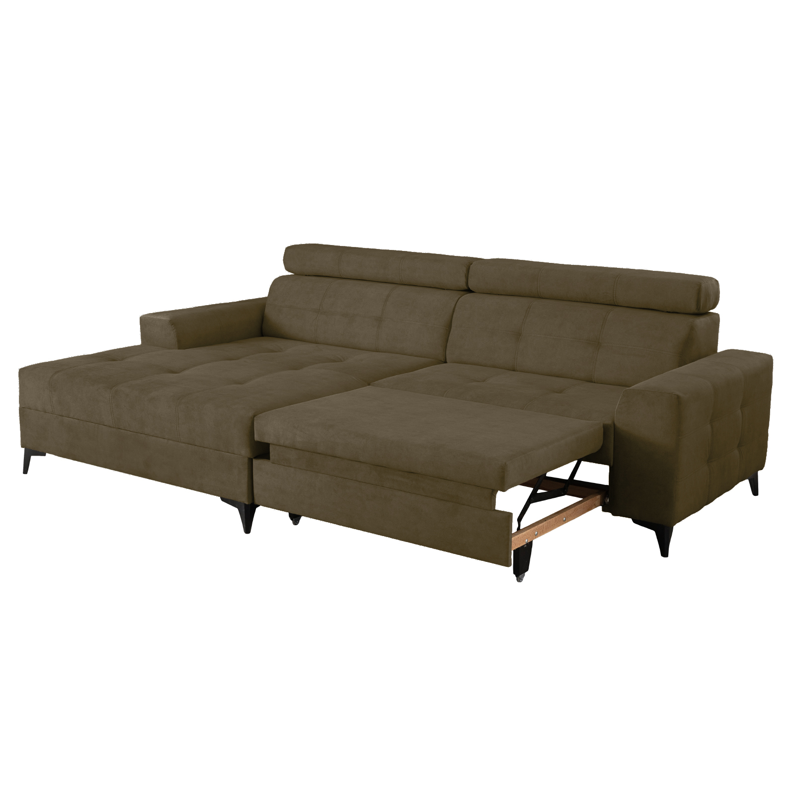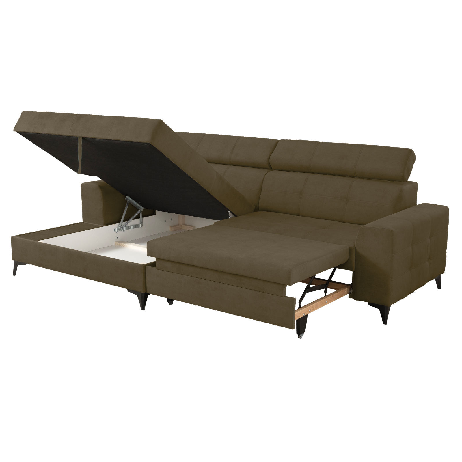 Coltar FLORIDA ONE L extensibil, cu arcuri si lada depozitare, colt stanga, kaki, 275x175x92 cm