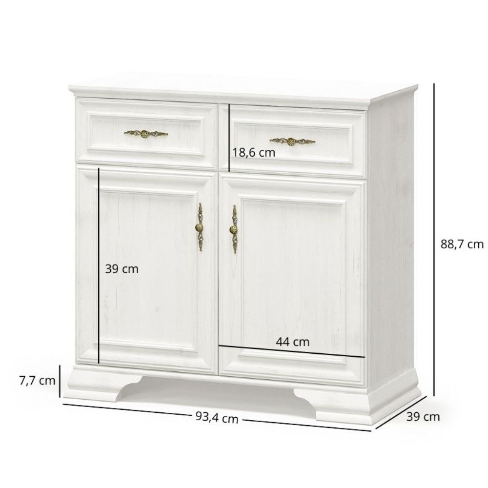 Nuanța caracteristică pin anderson oferă comodei un aspect cald și primitor, aducând o atmosferă relaxantă în orice încăpere. Două sertare încăpătoare, dotate cu ghidaje cu bile cu extragere completă, permit depozitarea practică a obiectelor de zi cu zi, dar și a celor mai personale. Mânerele metalice adaugă un accent subtil și facilitează deschiderea sertarelor.