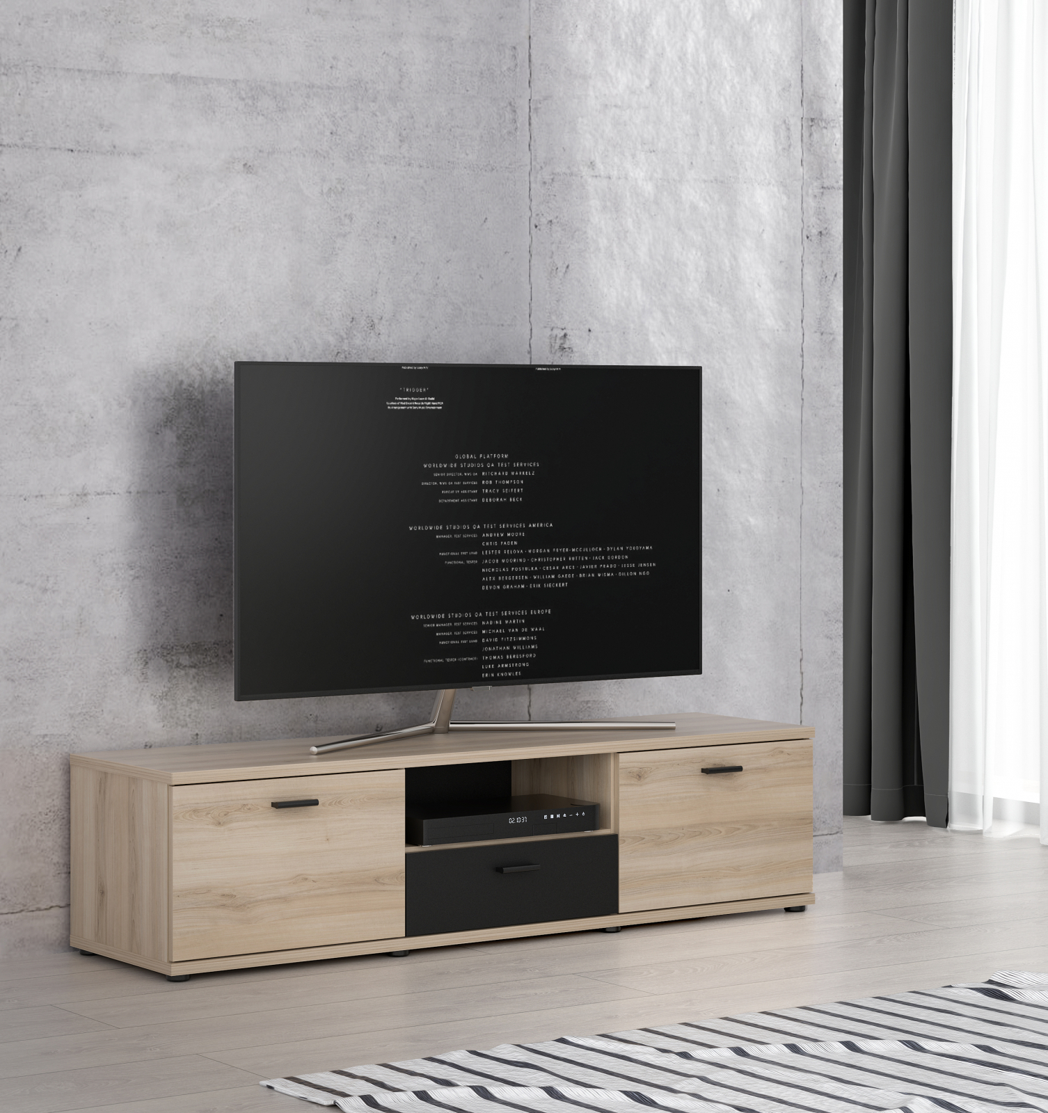 Comoda este o piesa eleganta de mobilier care aduce un aspect modern si functionalitate in incaperea ta. Aceasta este conceputa special pentru a gazdui televizorul tau si a oferi spatiu de depozitare pentru diferite dispozitive si obiecte.