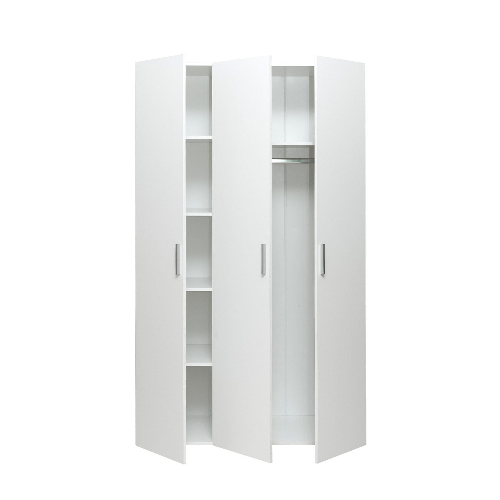 Dulap in 3 usi realizat din PAL melaminat, unde compartimentarea ajuta la eficientizarea spațiului de depozitare. Dulapul contine o polita fixa în partea superioara și bara de umerase și 4 polite în partea stanga.