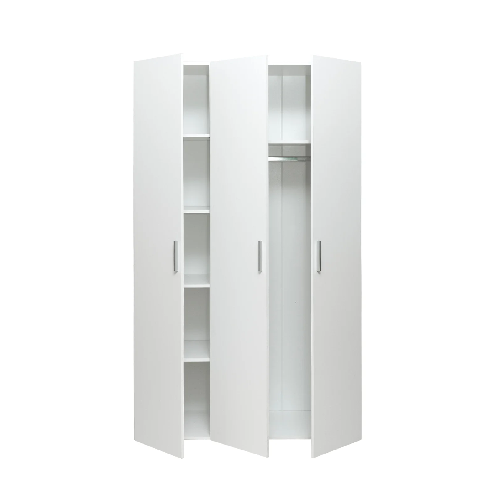 Dulap ALMA L, 3 usi, 6 rafturi, bara de haine, alb, 120x52x203 cm