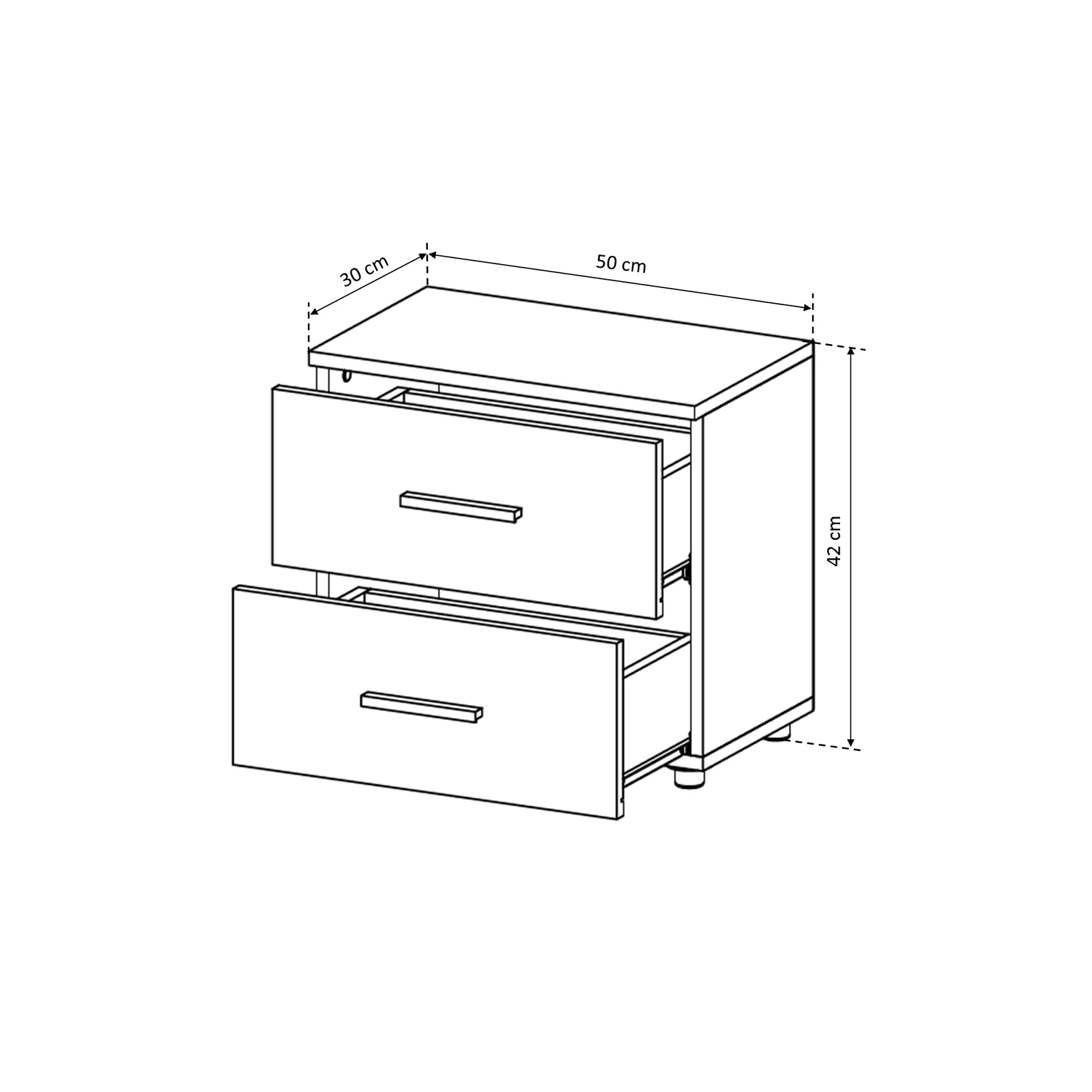2 x Noptiera ALMA, 2 sertare, alb, 50x30x42 cm