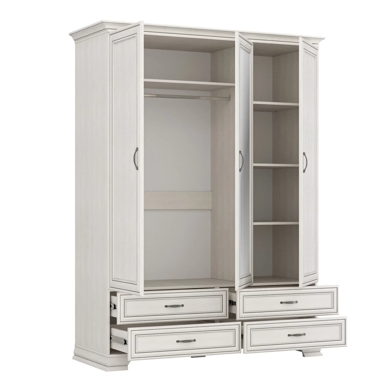 •  Dulap 3 usi si 4 sertare cu oglinda TIFFANY, cu bara haine si rafturi, crem fineline, 159x62,4x212,1 cm